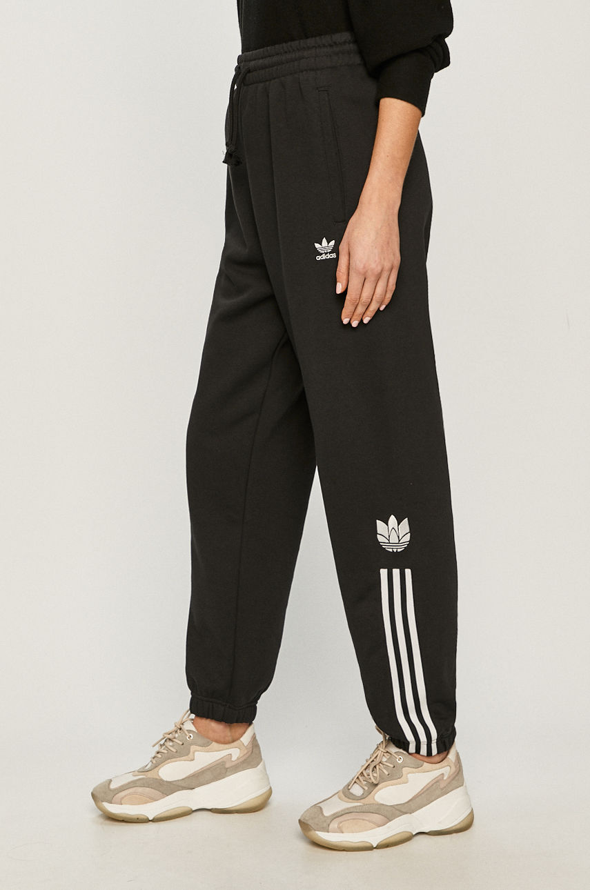 Spodnie z kolekcji adidas Originals. Model wykonany z grubej, lekko elastycznej dzianiny. – Nogawki wykończone ściągaczem. – Wsuwane kieszenie. – Elastyczna listwa w pasie. – W pasie troczki. – Gruba, elastyczna dzianina. – Szerokość w pasie: 36 cm. – Szerokość w biodrach: 48 cm. – Wysokość stanu: 35 cm. – Szerokość nogawki na dole: 14 cm. – Szerokość nogawki: 34 cm. – Długość: 100 cm. – Wymiary podane dla rozmiaru: 36. Wzór: gładkie Materiał: dzianina Skład: Materiał zasadniczy: 70 % Bawełna, 30 % Poliester, Inne materiały: 100 % Bawełna ID produktu: 4891-SPD047 Kod producenta: GN2945