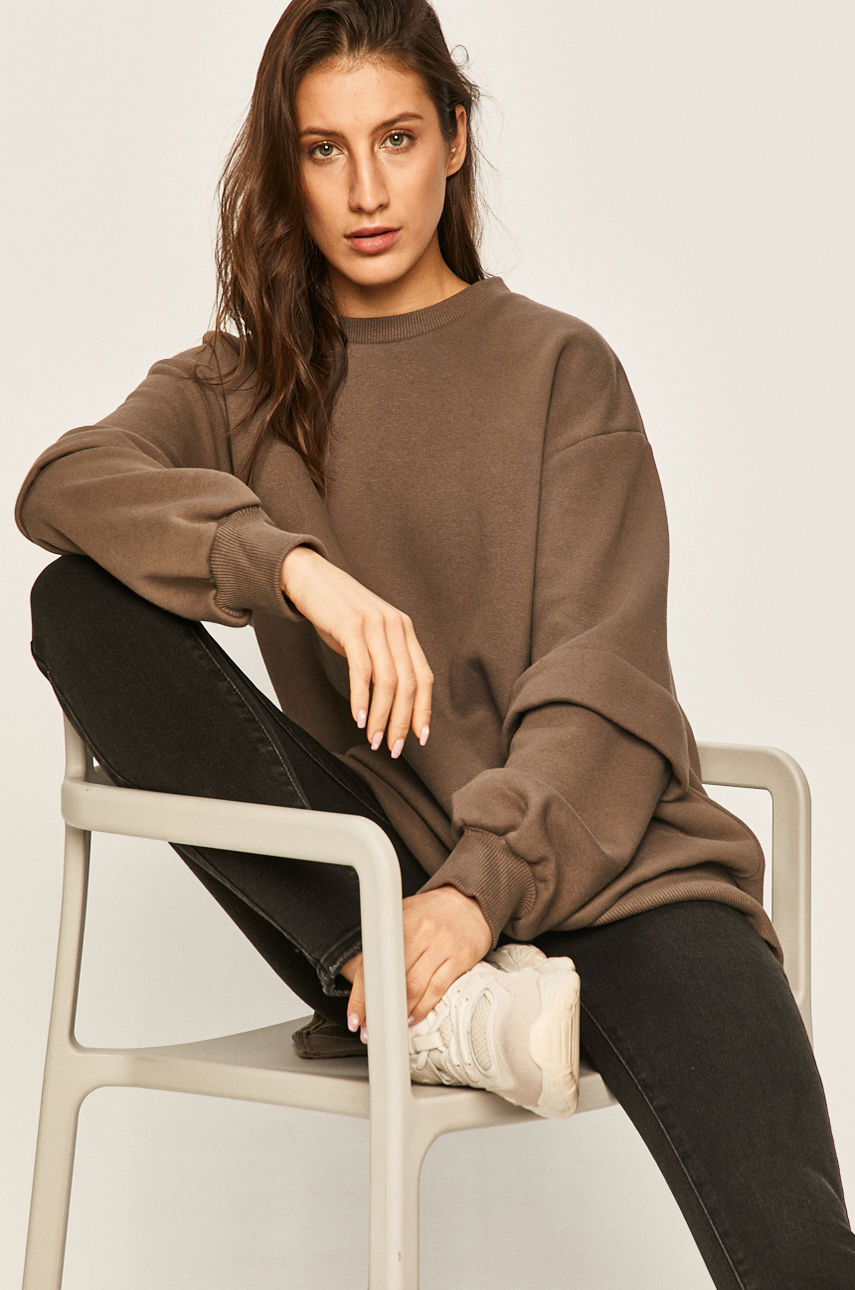 Bluza z kolekcji Answear. Model wykonany z gładkiej dzianiny. – Luźny fason. – Miękko wyściełany model. – Okrągły dekolt. – Obniżona linia ramion. – Wykończenie ze ściągacza. – Gładka dzianina. – Długość rękawa(mierzona od dekoltu): 79 cm. – Szerokość pod pachami: 57 cm. – Długość: 80 cm. – Wymiary podane dla rozmiaru: S. Wzór: gładkie Materiał: bawełna Kaptur: bez kaptura Skład: 100 % Bawełna ID produktu: -100-BLD03K Kod producenta: 6214.TL