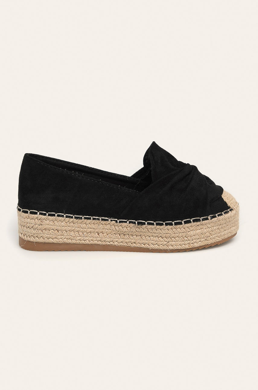 Espadryle z kolekcji Answear. Model wykonany z imitacji zamszu. – Okrągły, lekko usztywniony nosek. – Gumowa podeszwa. – Lekko usztywniony zapiętek. – Model na platformie. – Wysokość platformy: 3 cm. – Długość wkładki wynosi: 24 cm. – Wymiary podane dla rozmiaru: 37. Obcas: platforma Materiał: imitacja zamszu Skład: Cholewka: Materiał tekstylny, Wnętrze: Materiał syntetyczny, Materiał tekstylny, Podeszwa: Materiał syntetyczny ID produktu: -100-OBD04C Kod producenta: CZ740B.K