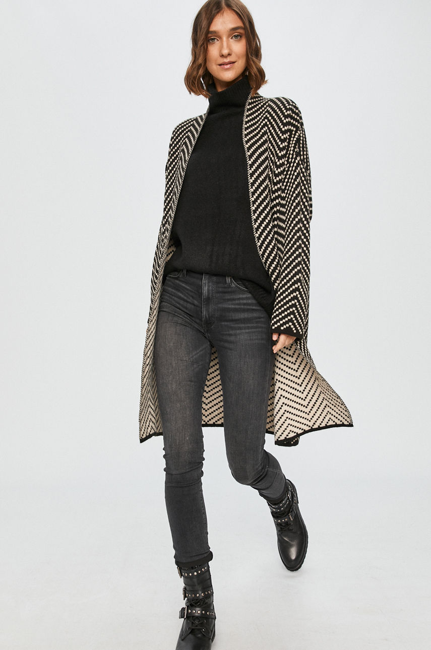 Kardigan z kolekcji Answear Lab. Model wykonany z grubej dzianiny z wełną. – Niezapinany model. – Prosty fason. – Obniżona linia ramion. – Gruba, elastyczna dzianina. – Wzorzysta dzianina. – Długość rękawa(mierzona od dekoltu): 80 cm. – Długość: 97 cm. – Szerokość pod pachami: 56 cm. – Wymiary podane dla rozmiaru: S. Wzór: wzorzyste Materiał: z domieszką wełny Dzianina: gruba Skład: 73 % Akryl, 7 % Poliamid, 20 % Wełna ID produktu: -100-SWD017 Kod producenta: WZ20.SWD017