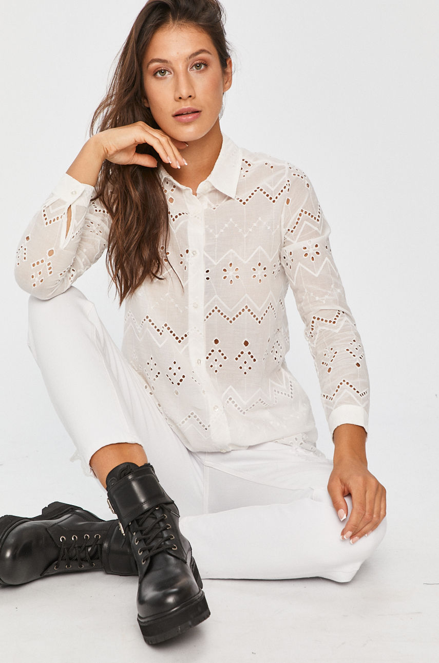 Koszula z kolekcji Answear Lab. Model wykonany z koronkowego materiału. – Prosty fason. – Rękawy z zapinanymi mankietami. – Zapięcie na guziki. – Cienka, nieelastyczna tkanina. – Szerokość pod pachami: 47 cm. – Długość rękawa: 57 cm. – Długość: 77 cm. – Wymiary podane dla rozmiaru: S. Wzór: gładkie Fason: regular Rękaw: długi Materiał: bawełna Kołnierzyk: klasyczny Okazje: casual Skład: 100 % Bawełna ID produktu: -100-KDD00E Kod producenta: WZ20.KDD00E