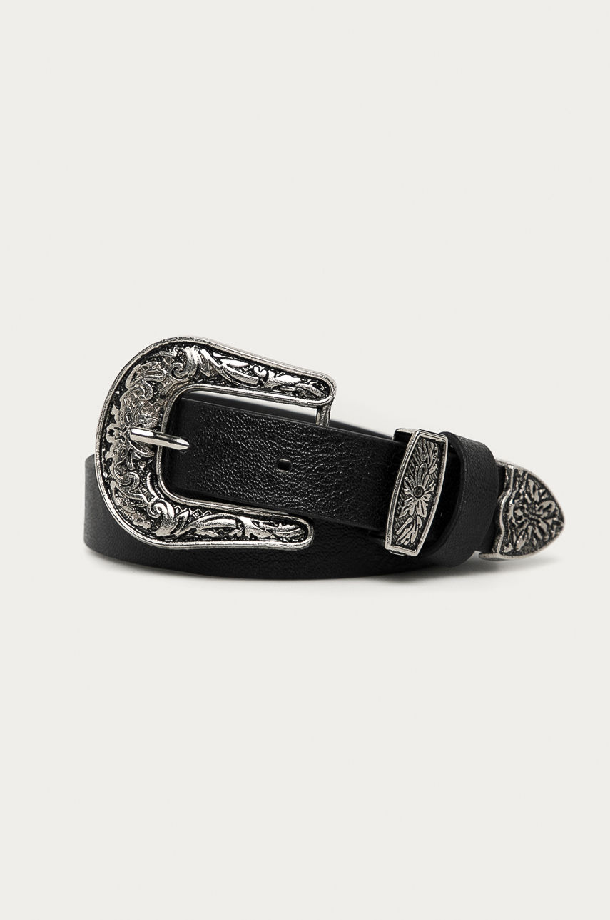 Pasek z kolekcji Answear Lab. Model wykonany ze skóry ekologicznej. – Długość paska od początku klamry do ostatniej dziurki: 72 cm. – Długość paska od szpilki do pierwszej dziurki: 83 cm. – Ilość dziurek: 7. – Szerokość paska: 2 cm. – Wymiary podane dla paska o rozmiarze: S. Materiał: imitacja skóry licowej Skład: 100 % Poliuretan ID produktu: -100-PAD01H Kod producenta: no.003.BE