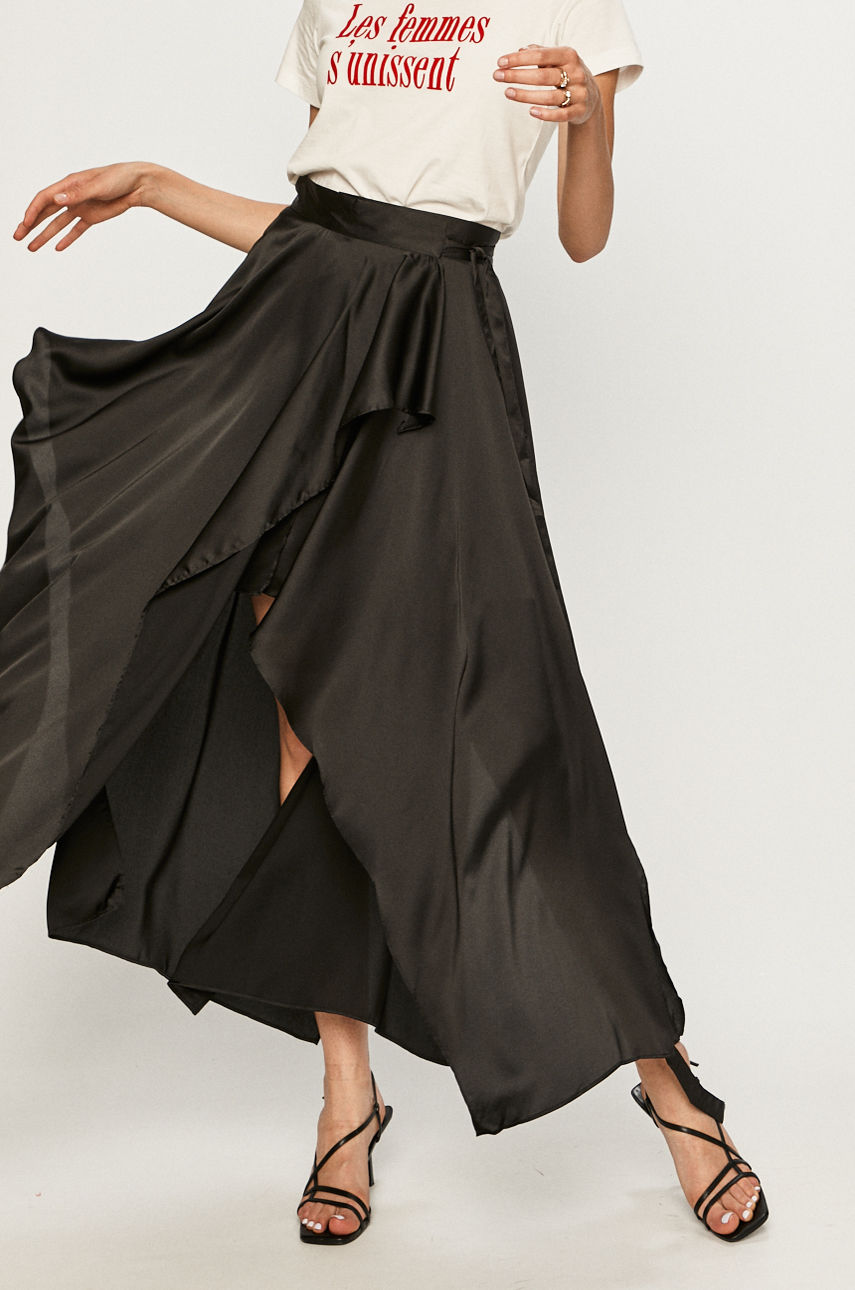 Spódnica z kolekcji Answear. Model o prostym kroju, wykonany z elastycznej tkaniny. – Prosty fason. – Podwyższona talia. – Wiązanie w talii. – Asymetryczny model. – Cienka, nieelastyczna tkanina. – Gładka tkanina. – Szerokość w pasie: 35 cm. – Długość: 105 cm. – Wymiary podane dla rozmiaru: S. Wzór: gładkie Materiał: tkanina Długość: midi Okazje: casual Fason: prosty Skład: 100 % Poliester ID produktu: -100-SDD01A Kod producenta: 4293.A