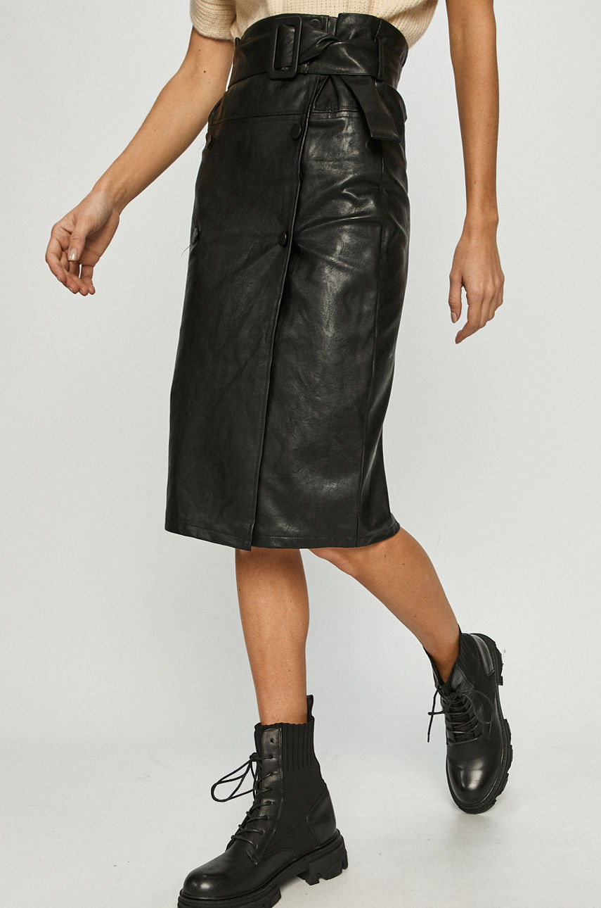 Spódnica z kolekcji Answear Lab. Model o prostym kroju, wykonany z imitacji skóry. – Zapięcie na suwak. – Prosty fason. – Ozdobne guziki. – W talii pasek. – Model wykonany z imitacji skóry. – Szerokość w pasie: 33 cm. – Długość: 65 cm. – Wymiary podane dla rozmiaru: S. Wzór: gładkie Długość: mini Okazje: casual Materiał: imitacja skóry Fason: prosty Skład: 100 % Poliuretan ID produktu: -110-SDD008 Kod producenta: 2238.DA