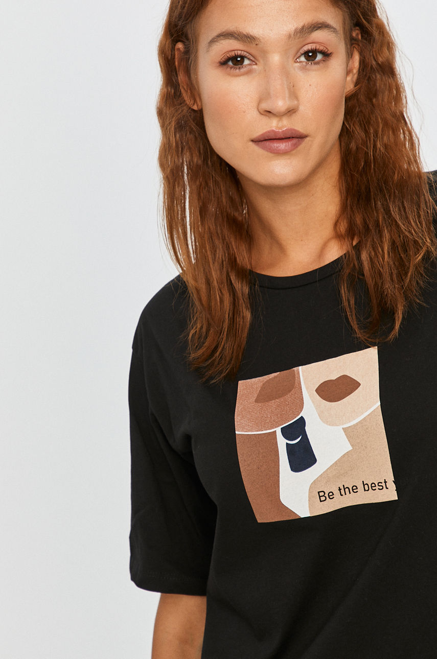 Lekki T-shirt z kolekcji Answear Lab. Model wykonany z cienkiej, elastycznej dzianiny. – Prosty fason. – Okrągły dekolt. – Cienka, elastyczna dzianina. – Model z nadrukiem. – Długość: 60 cm. – Szerokość pod pachami: 47 cm. – Wymiary podane dla rozmiaru: S. Wzór: nadruk Dekolt: okrągły Materiał: bawełna Okazje: casual Skład: 100 % Bawełna ID produktu: -100-TSD0HR Kod producenta: SONG.680.DA