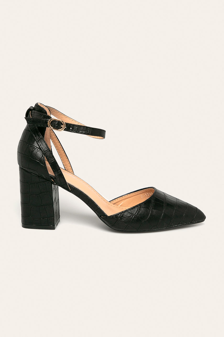 Sandały z kolekcji Answear. Model wykonany ze skóry ekologicznej. – Zapięcie na klamrę ze szpilką. – Spiczasty nosek. – Gumowa podeszwa. – Model na obcasie typu słupek. – Wysokość obcasa: 8 cm. – Długość wkładki wynosi: 23 cm. – Wymiary podane dla rozmiaru: 37. Materiał: syntetyczny Obcas: słupek Materiał: imitacja skóry licowej Nosek: szpic Wysokość obcasa: 5-8 cm Skład: Cholewka: Materiał syntetyczny, Wnętrze: Materiał syntetyczny, Podeszwa: Materiał syntetyczny ID produktu: -100-OBD076 Kod producenta: D1248.L