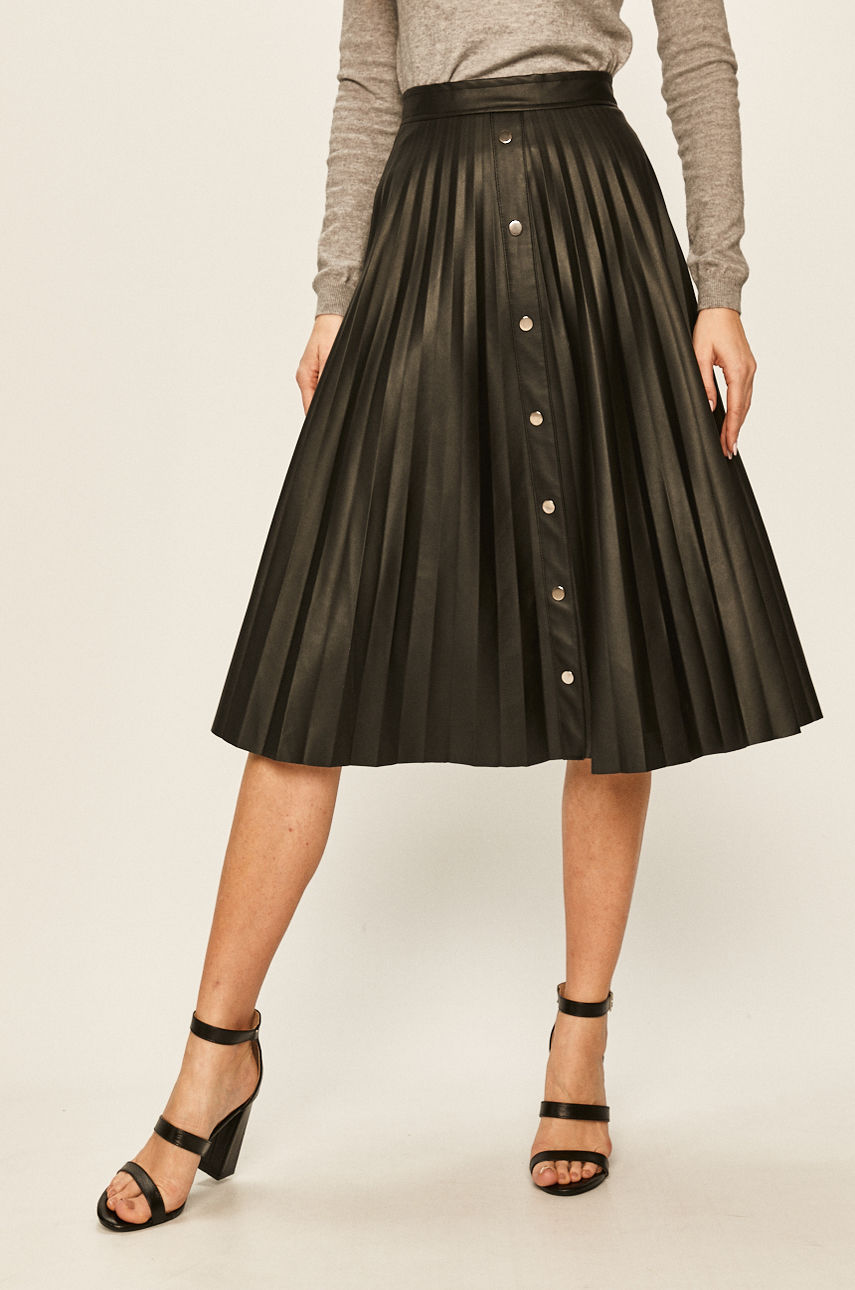 Spódnica z kolekcji Answear. Model o rozkloszowanym kroju, wykonany z skóry ekologicznej. – Kryte zapięcie na suwak. – Rozkloszowany fason. – Plisowany model. – Gładki materiał. – Ozdobne detale. – Szerokość w pasie: 31 cm. – Długość: 73 cm. – Wymiary podane dla rozmiaru: S. Wzór: gładkie Długość: midi Materiał: imitacja skóry Fason: rozkloszowany Okazje: koktajl Skład: 50 % Bawełna, 50 % Poliester ID produktu: -100-SDD01U Kod producenta: NEWTOON1.OL