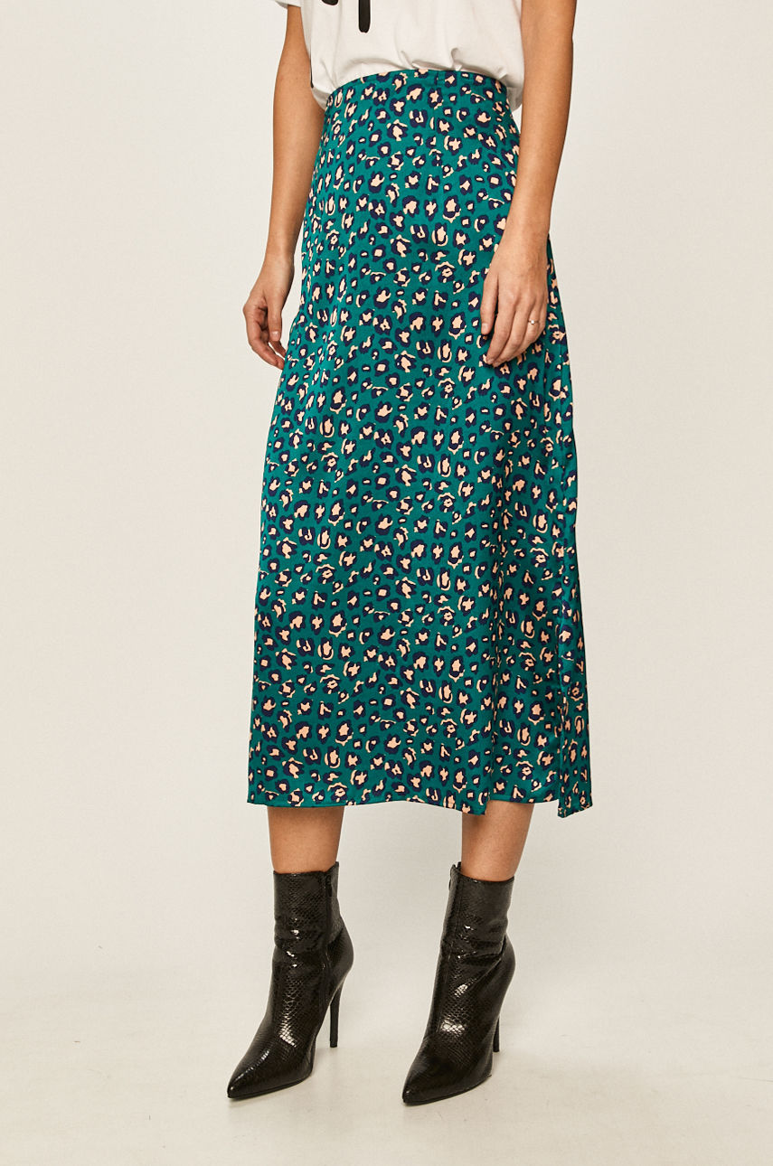 Spódnica z kolekcji Answear. Model o rozkloszowanym kroju, wykonany z wzorzystej tkaniny. – Rozkloszowany fason. – Kryte zapięcie na suwak. – Wzorzysta tkanina. – Szerokość w pasie: 35 cm. – Długość: 83 cm. – Wymiary podane dla rozmiaru: S. Wzór: wzorzyste Materiał: tkanina Długość: midi Okazje: casual Fason: rozkloszowany Wzór: animal Skład: 100 % Poliester ID produktu: -100-SDD00T Kod producenta: WW20.SDD00T