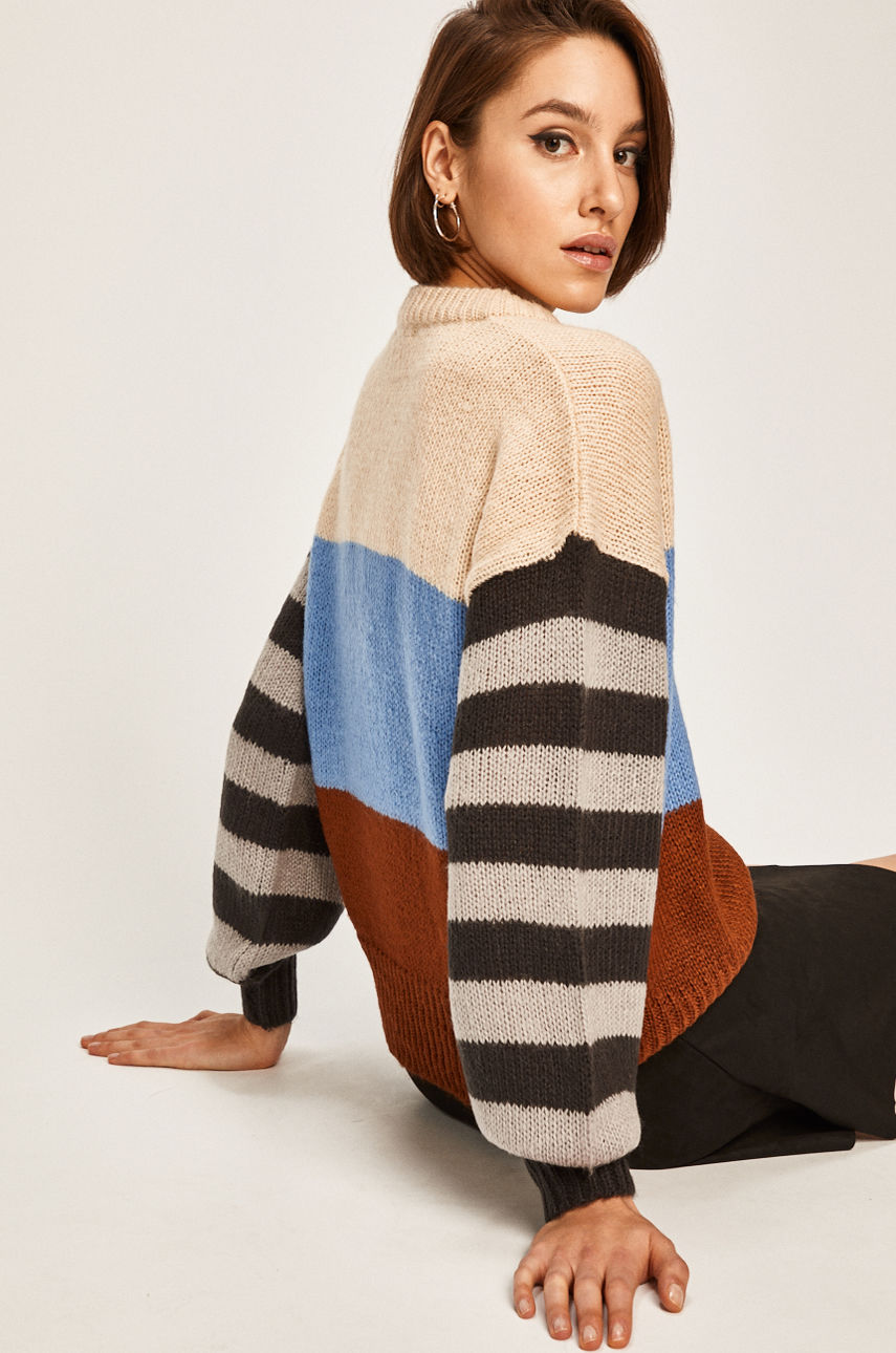 Sweter z kolekcji Answear. Model z okrągłym dekoltem, wykonany z cienkiej dzianiny. – Luźny model. – Okrągły dekolt. – Rękawy wykończone ściągaczem. – Rozszerzany rękaw. – Długość rękawa: 50 cm. – Długość: 61 cm. – Szerokość pod pachami: 56 cm. – Wymiary podane dla rozmiaru: S. Wzór: wzorzyste Dekolt: okrągły Dzianina: cienka Skład: 100 % Akryl ID produktu: -90-SWD012 Kod producenta: LK230LEVY.AA