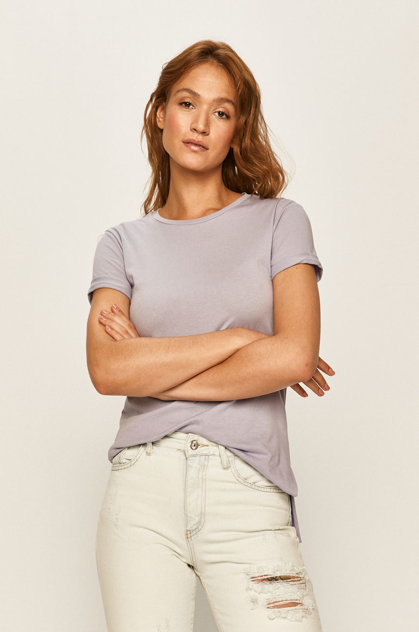 T-shirt z kolekcji Answear. Model wykonany z elastycznej dzianiny. – Okrągły dekolt. – Prosty fason. – Gładka dzianina. – Długość: 67 cm. – Szerokość pod pachami: 47 cm. – Wymiary podane dla rozmiaru: S. Wzór: gładkie Dekolt: okrągły Materiał: bawełna Okazje: casual Skład: 100 % Bawełna ID produktu: -100-TSD04F Kod producenta: SONG.135.PP