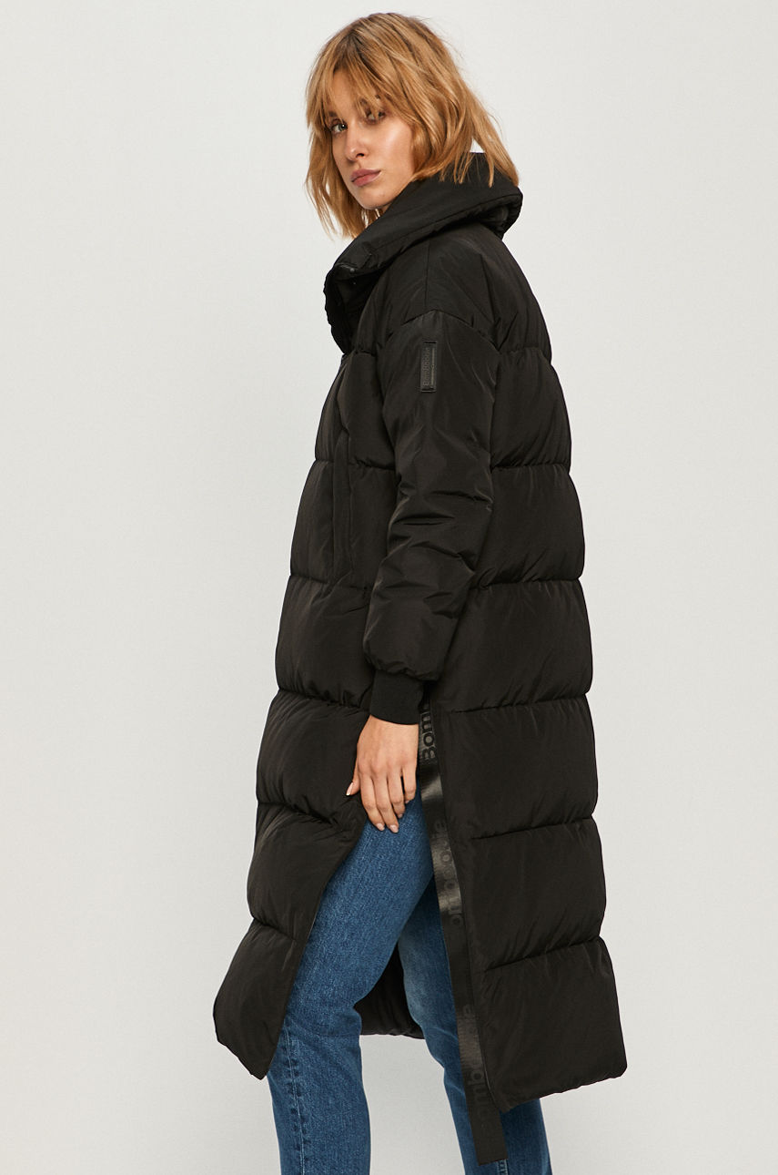 Kurtka puchowa z kolekcji Bomboogie. Ocieplony model wykonany z gładkiego materiału. – Ocieplony model na podszewce. – Wypełnienie z naturalnego puchu i pierza. – Obszerny model. – Zapinane kieszenie. – Model z kapturem. – Podwyższony kołnierz. – Zapięcie na suwak. – Pikowanie. – Szerokość pod pachami: 62 cm. – Długość rękawa(mierzona od kołnierza): 72 cm. – Długość: 107 cm. – Wymiary podane dla rozmiaru: S. Podszewka: z podszewką Kaptur: z kapturem Fason: oversize Ocieplenie: ocieplane Ocieplenie: puchowe Skład: Podszewka: 100 % Nylon, Wypełnienie: 10 % Pierze, 90 % Puch, Materiał zasadniczy: 65 % Poliester z recyklingu, 35 % Poliester ID produktu: -100-KUD017 Kod producenta: CW5980TMNQ