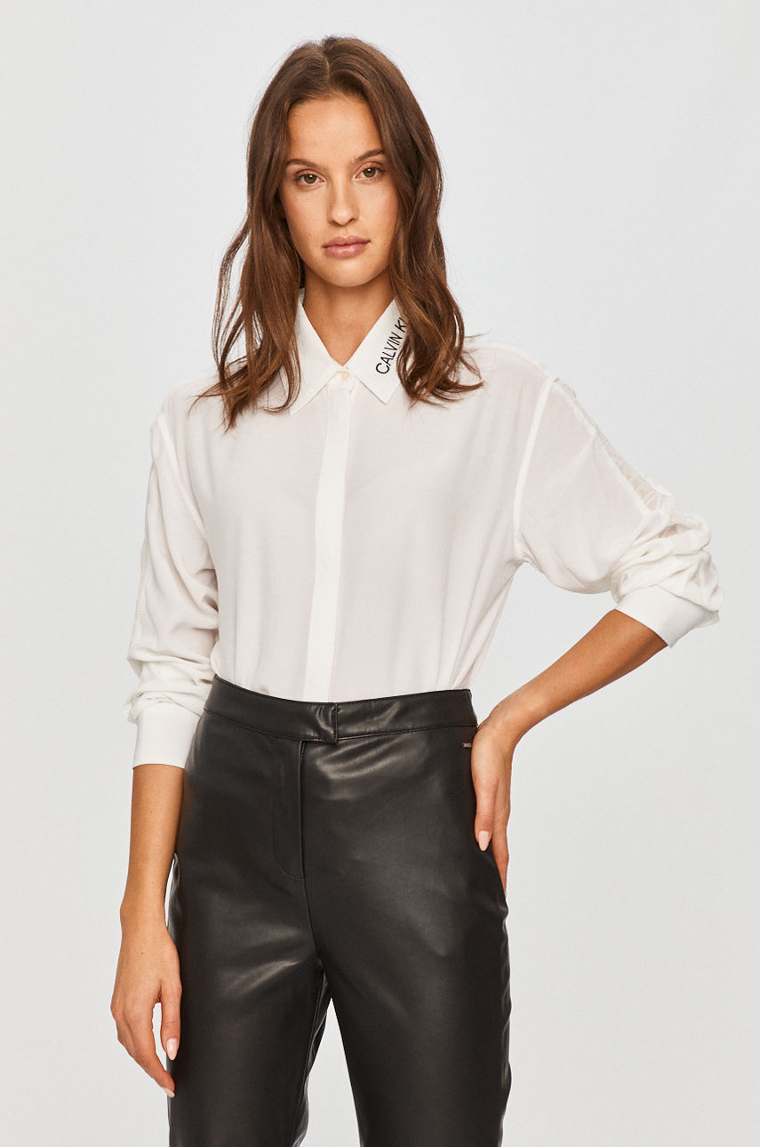 Koszula z kolekcji Calvin Klein Jeans. Model wykonany z gładkiej tkaniny. – Model z kołnierzykiem. – Rękawy z zapinanymi mankietami. – Prosty fason. – Zapięcie na guziki. – Gładka tkanina. – Długość rękawa: 56 cm. – Długość: 73 cm. – Szerokość pod pachami: 50 cm. – Wymiary podane dla rozmiaru: S. Wzór: gładkie Fason: regular Rękaw: długi Materiał: wiskoza Kołnierzyk: klasyczny Okazje: casual Skład: 100 % Wiskoza ID produktu: 4900-KDD007 Kod producenta: J20J214432