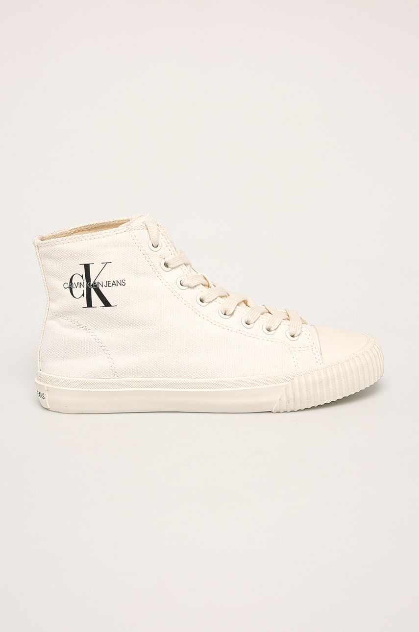 Trampki z kolekcji Calvin Klein Jeans. Model wykonany z materiału tekstylnego. – Gumowa podeszwa. – Sznurowany model. – Tekstylne wnętrze. – Okrągły, gumowany nosek. – Lekko usztywniony zapiętek. – Długość wkładki wynosi: 24 cm. – Wymiary podane dla rozmiaru: 37. Materiał: tekstylny Obcas: płaski Skład: Cholewka: Materiał tekstylny, Wnętrze: Materiał tekstylny, Podeszwa: Materiał syntetyczny ID produktu: 4910-OBD3F9 Kod producenta: R7800