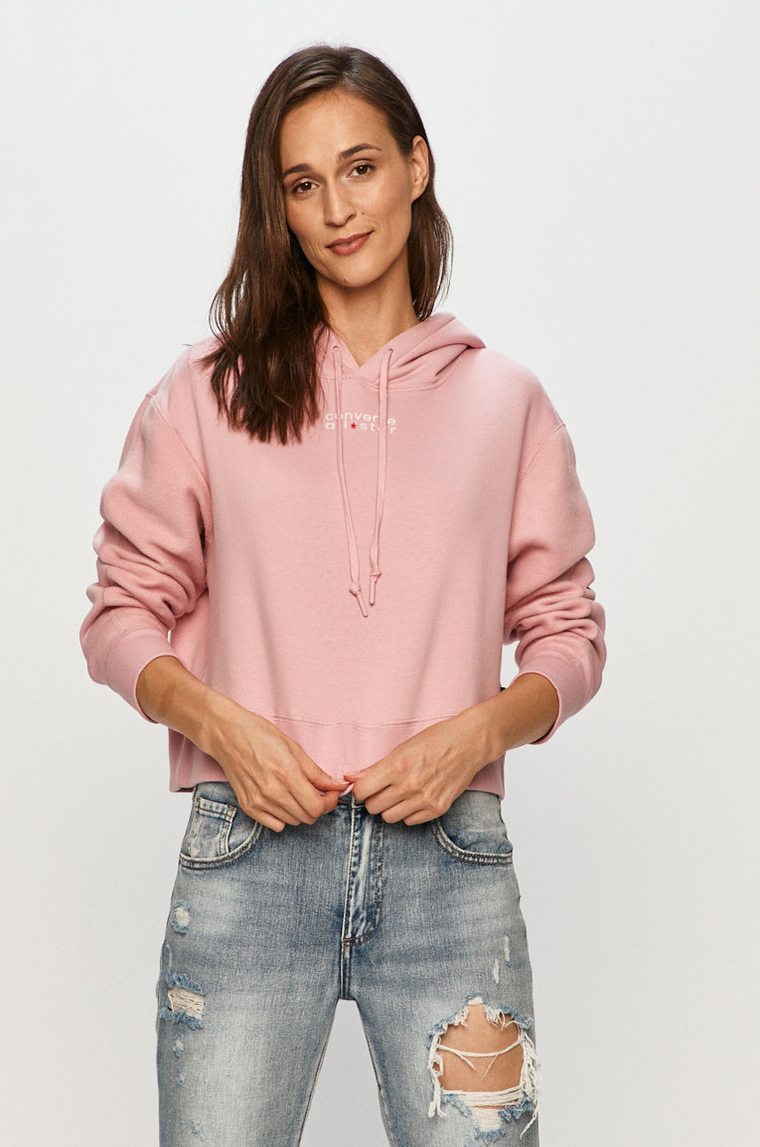 Bluza z kapturem z kolekcji Converse. Model wykonany z dzianiny. – Luźny model. – Długi rękaw. – Kaptur ściągany troczkami. – Miękko wyściełany model. – Wykończenie ze ściągacza. – Długość rękawa: 58 cm. – Długość: 48 cm. – Szerokość pod pachami: 60 cm. – Wymiary podane dla rozmiaru: M. Wzór: aplikacja Kaptur: z kapturem Skład: 80 % Bawełna, 20 % Poliester ID produktu: 4900-BLD0ML Kod producenta: 10019800.A04