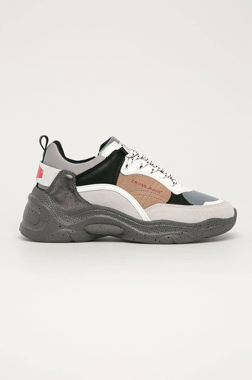 Buty z kolekcji Cross Jeans. Model wykonany z połączenia skóry ekologicznej i materiału tekstylnego. – Okrągły, usztywniony nosek. – Gumowa podeszwa. – Usztywniony zapiętek. – Tekstylne wnętrze. – Sznurowany model. – Wysokość platformy: 4,5 cm. – Długość wkładki wynosi: 23,5 cm. – Wymiary podane dla rozmiaru: 37. Obcas: platforma Materiał: tekstylny Materiał: imitacja zamszu Materiał: imitacja skóry licowej Skład: Cholewka: Materiał syntetyczny, Materiał tekstylny, Wnętrze: Materiał tekstylny, Podeszwa: Materiał syntetyczny ID produktu: -100-OBD038 Kod producenta: GG2R4037
