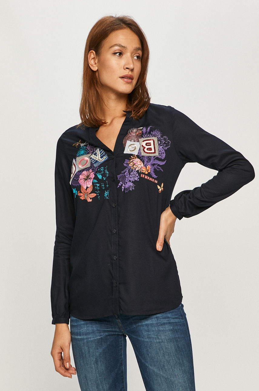 Koszula z kolekcji Desigual. Model wykonany z tkaniny z aplikacją. – Prosty fason. – Długi rękaw. – Zapięcie na guziki. – Model z aplikacją. Fason: regular Wzór: aplikacja Rękaw: długi Materiał: wiskoza Okazje: casual Skład: 100 % Wiskoza ID produktu: 4900-BDD01E Kod producenta: 20WWCW79