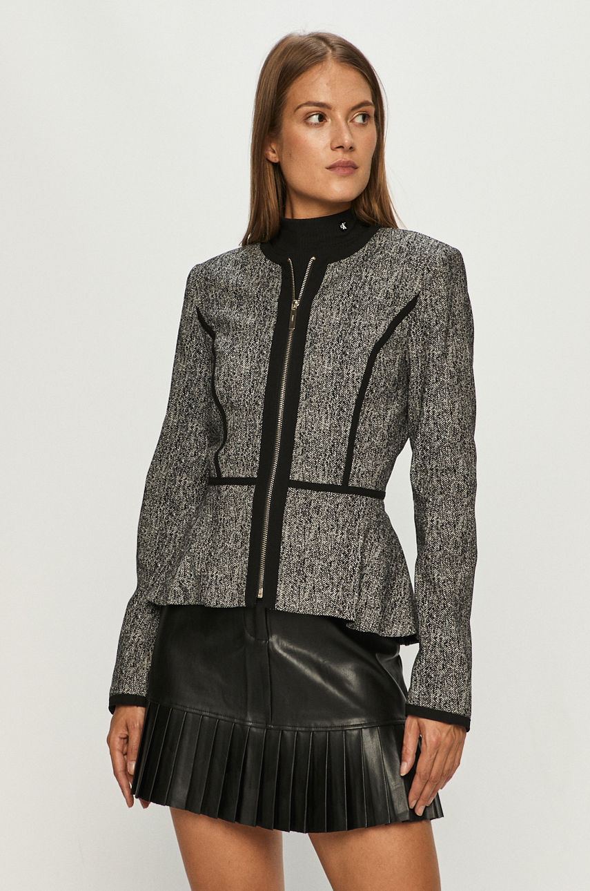 Kurtka z kolekcji Dkny. Nieocieplony model wykonany ze wzorzystego materiału. – Dopasowany fason. – Zapięcie na suwak. – Model z baskinką. – Cienki materiał. – Ozdobne przeszycia. – Długość rękawa: 61 cm. – Długość: 60 cm. – Szerokość pod pachami: 43 cm. – Szerokość w ramionach: 34 cm. – Wymiary podane dla rozmiaru: 36. Kaptur: bez kaptura Ocieplenie: nieocieplane Skład: Materiał 1: 21 % Nylon, 76 % Rayon, 3 % Spandex, Materiał 2: 65 % Poliester, 31 % Rayon, 4 % Spandex, Materiał 3: 100 % Poliester ID produktu: 4900-KUD0SD Kod producenta: W3014EYA