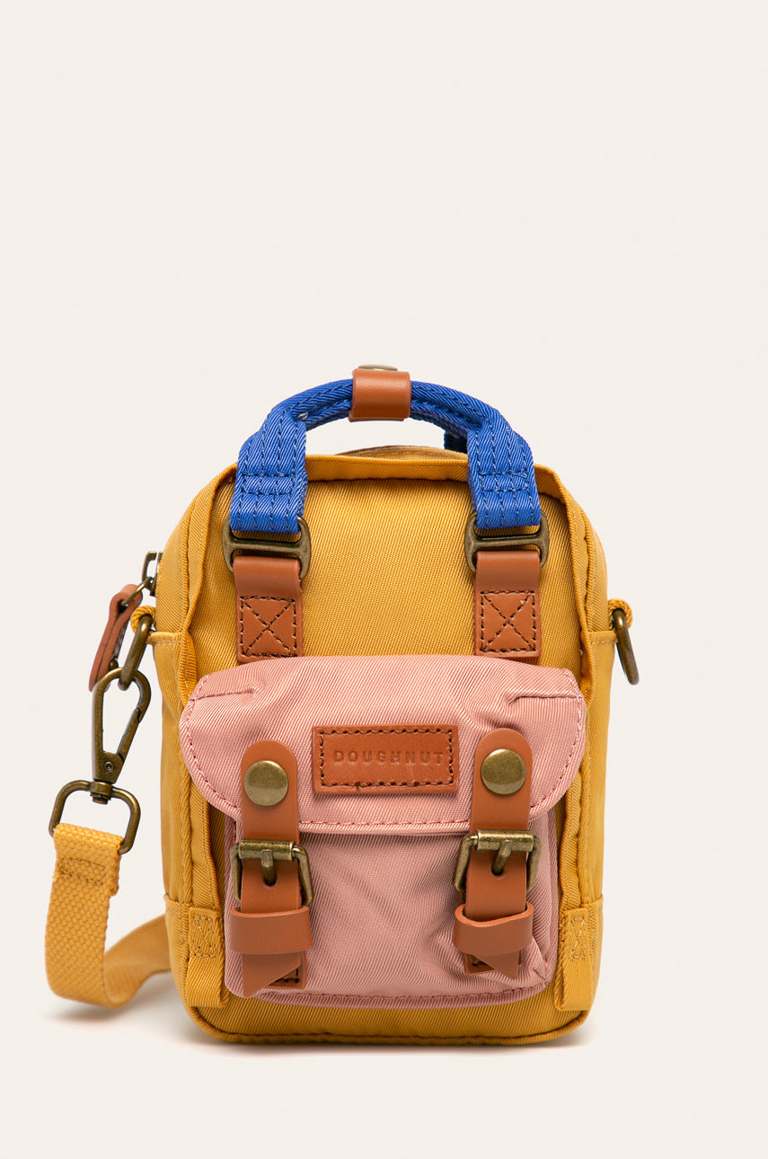 Plecak z kolekcji Doughnut. Model wykonany z gładkiego materiału. Wyjątkowo wytrzymały materiał. – Jednokomorowy model. – Kieszeń z przodu. – Wewnątrz dodatkowe kieszenie. – Zapięcie na dwustronny suwak. – Uchwyt do ręki. – Regulowana długość pasków. – W zależności od sposobu zapięcia pasków umożliwia noszenie jako torebki lub plecaka. – Lekki model. – Nie mieści formatu A4. – Ozdobne detale. – Głębokość: 4 cm. – Wysokość: 16 cm. – Szerokość u podstawy: 11 cm. Skład: Materiał zasadniczy: 100 % Materiał tekstylny, Wykończenie: 100 % Skóra, ID produktu: 100-PKD00D Kod producenta: D226.3590