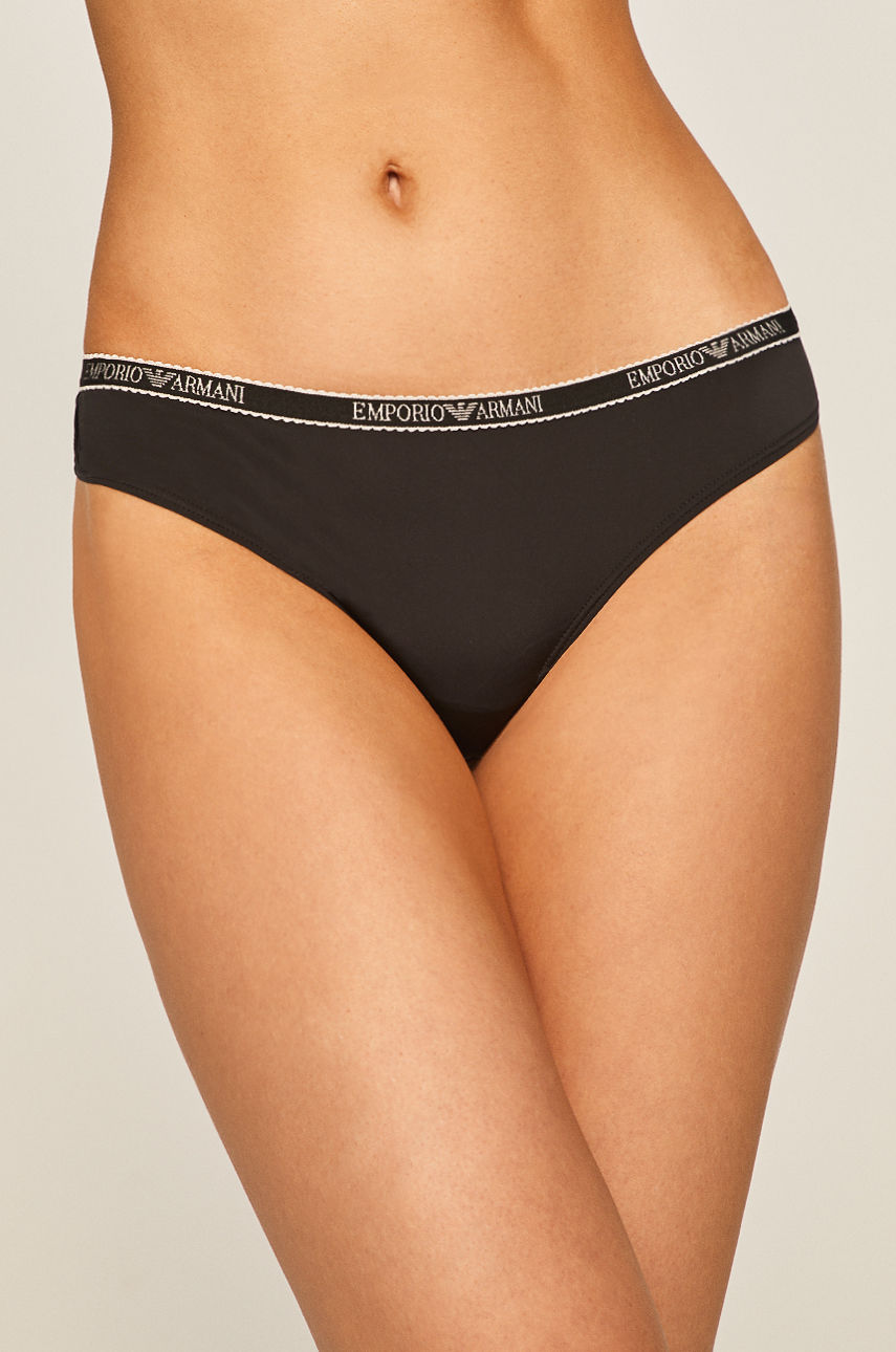 Stringi z kolekcji Emporio Armani. Model wykonany z gładkiego materiału. Rodzaj: stringi Wzór: gładkie Materiał: satyna Skład: 84 % Poliamid, 16 % Elastan ID produktu: 4931-BID553 Kod producenta: 162468..