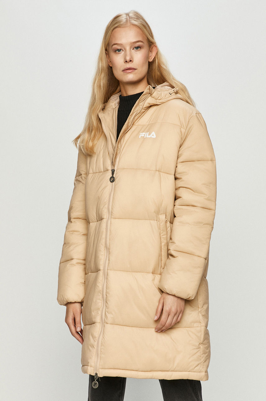 Kurtka z kolekcji Fila. Ocieplony model wykonany z gładkiej tkaniny. – Ocieplony model na podszewce. – Prosty fason. – Zapinane kieszenie. – Model z kapturem. – Pikowany model. – Zapięcie na suwak. – Długość rękawa: 58 cm. – Długość: 90 cm. – Szerokość pod pachami: 61 cm. – Szerokość w ramionach: 49 cm. – Wymiary podane dla rozmiaru: S. Podszewka: z podszewką Kaptur: z kapturem Ocieplenie: ocieplane Skład: Podszewka: 100 % Poliester, Wypełnienie: 100 % Poliester, Materiał zasadniczy: 100 % Poliamid ID produktu: 4900-KUD0KI Kod producenta: 687219.A694