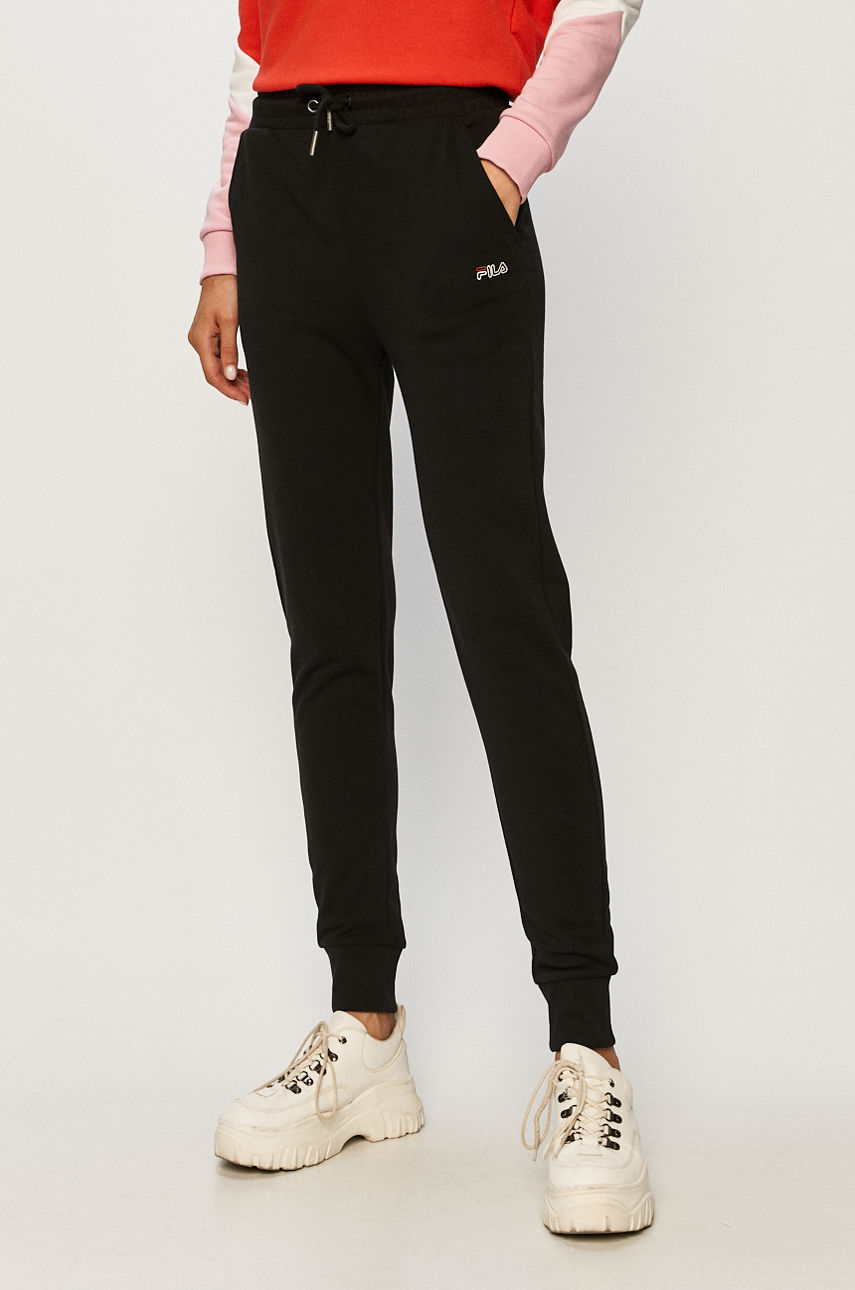 Spodnie z kolekcji Fila. Model wykonany z cienkiej, elastycznej dzianiny. – Luźny model. – Wsuwane kieszenie. – W pasie troczki. – Elastyczna listwa w pasie. – Cienka, elastyczna dzianina. – Gładka dzianina. – Nogawki wykończone ściągaczem. – Szerokość w pasie: 38 cm. – Szerokość w biodrach: 49 cm. – Wysokość stanu: 29 cm. – Szerokość nogawki na dole: 12 cm. – Szerokość nogawki: 26 cm. – Długość: 100 cm. – Wymiary podane dla rozmiaru: S. Wzór: gładkie Materiał: dzianina Skład: 95 % Bawełna, 5 % Wiskoza ID produktu: 4900-SPD0CY Kod producenta: 683500