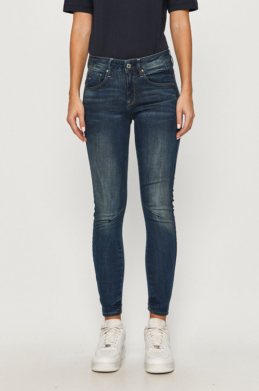 Jeansy z kolekcji G-Star Raw w fasonie skinny z regularną talią. Model wykonany ze spranego denimu. – Fason skinny. – Zapięcie na guzik i suwak. – Wsuwane kieszenie. – Ozdobnie sprany denim. – Szerokość w pasie: 34 cm. – Szerokość w biodrach: 41 cm. – Wysokość stanu: 20 cm. – Szerokość nogawki na dole: 12 cm. – Szerokość nogawki: 22 cm. – Długość nogawki: 91 cm. – Wymiary podane dla rozmiaru: 27/32. Kolor: niebieski Fason: zwężane Skład: 92 % Bawełna, 1 % Elastan, 7 % Poliester ID produktu: 100-SJD02F Kod producenta: D05477.6553