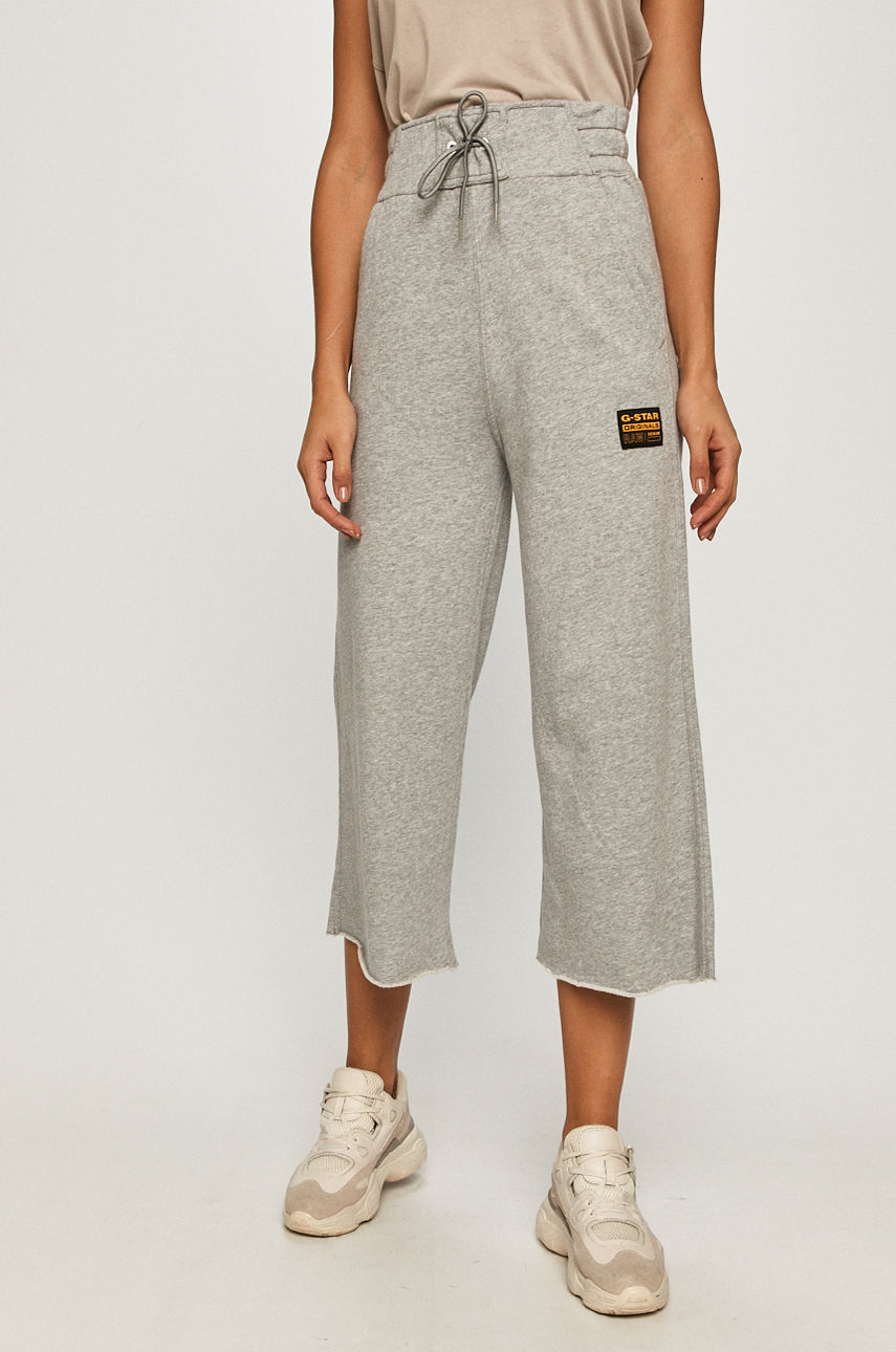 Spodnie z kolekcji G-Star Raw. Model wykonany z cienkiej, elastycznej dzianiny. – Rozszerzana nogawka. – Wsuwane kieszenie. – Elastyczna listwa w pasie. – W pasie troczki. – Podwyższona talia. Wzór: gładkie Materiał: dzianina Materiał: bawełna Talia: high Fason: culottes Skład: 100 % Bawełna ID produktu: 4900-SPD0EZ Kod producenta: D17299.C332.906