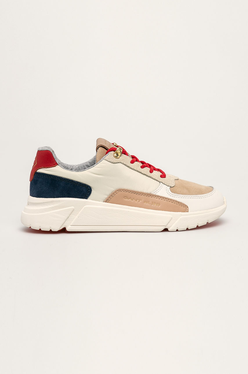 Buty z kolekcji Gant. Model wykonany z połączenia skóry naturalnej i materiału tekstylnego. – Okrągły nosek. – Żłobiona podeszwa. – Tekstylne wnętrze. – Model na platformie. – Sznurowany model. Obcas: platforma Materiał: skóra zamszowa Materiał: tekstylny Materiał: skóra licowa Skład: Cholewka: Materiał tekstylny, Skóra naturalna, Wnętrze: Materiał tekstylny, Podeszwa: Materiał syntetyczny ID produktu: 4901-OBD17J Kod producenta: 20533535.G293