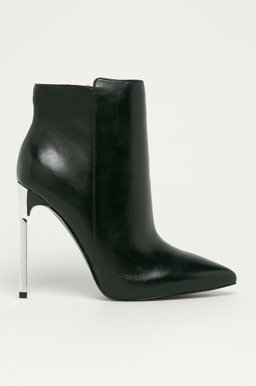 Botki z kolekcji Guess Jeans. Model wykonany ze skóry naturalnej. – Spiczasty, usztywniony nosek. – Zapięcie na suwak. – Komfortowe wnętrze. – Model na obcasie typu szpilka. – Wysokość obcasa: 12 cm. – Długość wkładki wynosi: 23,5 cm. – Wymiary podane dla rozmiaru: 37. Obcas: szpilka Ocieplenie: nieocieplane Materiał: skóra licowa Wysokość obcasa: powyżej 8 cm Zapięcie: na zamek Skład: Cholewka: Skóra naturalna, Wnętrze: Materiał syntetyczny, Materiał tekstylny, Skóra naturalna, Podeszwa: Materiał tekstylny ID produktu: 4900-OBD02U Kod producenta: FL7EHN.LEA10