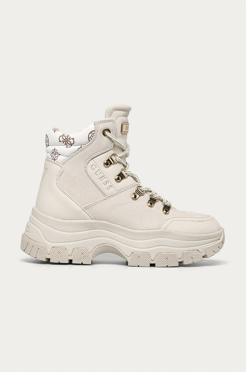 Buty z kolekcji Guess Jeans. Model wykonany z połączenia skóry ekologicznej i imitacji zamszu. – Okrągły, usztywniony nosek. – Usztywniony zapiętek. – Gumowa podeszwa. – Sznurowany model. – Model na platformie. – Wysokość platformy: 5,5 cm. – Długość wkładki wynosi: 23,5 cm. – Wymiary podane dla rozmiaru: 37. Obcas: platforma Materiał: tekstylny Materiał: imitacja zamszu Materiał: imitacja skóry licowej Skład: Cholewka: Materiał syntetyczny, Materiał tekstylny, Wnętrze: Materiał tekstylny, Podeszwa: Materiał syntetyczny ID produktu: 4900-OBD0R8 Kod producenta: FL8BEV.FAL12