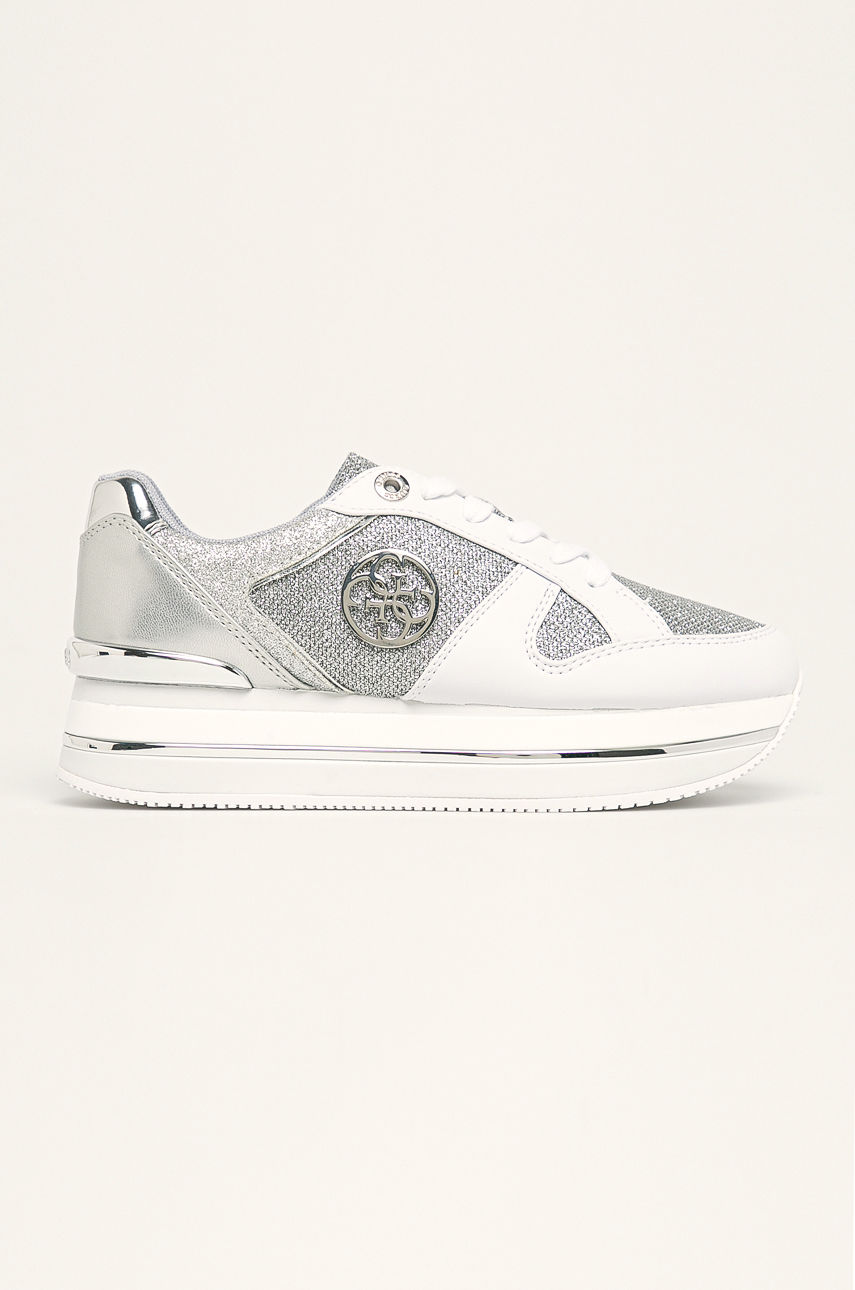 Buty z kolekcji Guess Jeans. Model wykonany z materiału syntetycznego. – Usztywniony nosek. – Antypoślizgowa podeszwa. – Gumowa podeszwa. – Usztywniony zapiętek. – Tekstylne wnętrze. – Sznurowany model. – Model na platformie. – Wysokość platformy: 4 cm. – Długość wkładki wynosi: 23,5 cm. – Wymiary podane dla rozmiaru: 37. Obcas: platforma Materiał: syntetyczny Skład: Cholewka: Materiał syntetyczny, Wnętrze: Materiał tekstylny, Podeszwa: Materiał syntetyczny ID produktu: 4901-OBD248 Kod producenta: FL5DLY.FAM12