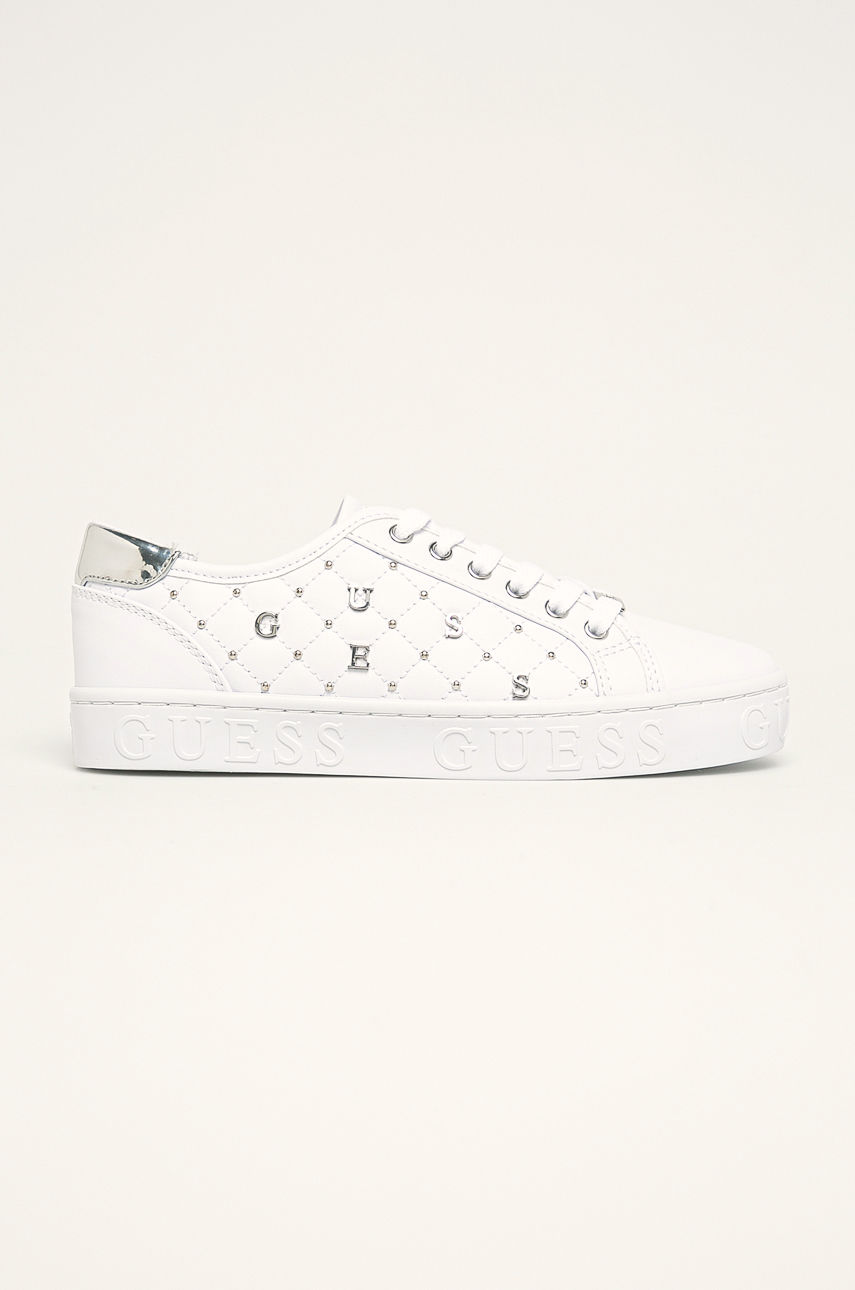 Buty z kolekcji Guess Jeans. Model wykonany ze skóry ekologicznej. – Okrągły nosek. – Gumowa podeszwa. – Usztywniony zapiętek. – Tekstylne wnętrze. – Sznurowany model. – Długość wkładki wynosi: 23,5 cm. – Wymiary podane dla rozmiaru: 37. Obcas: płaski Materiał: imitacja skóry licowej Skład: Cholewka: Materiał syntetyczny, Wnętrze: Materiał tekstylny, Podeszwa: Materiał syntetyczny ID produktu: 4901-OBD24O Kod producenta: FL5GLA.ELE12