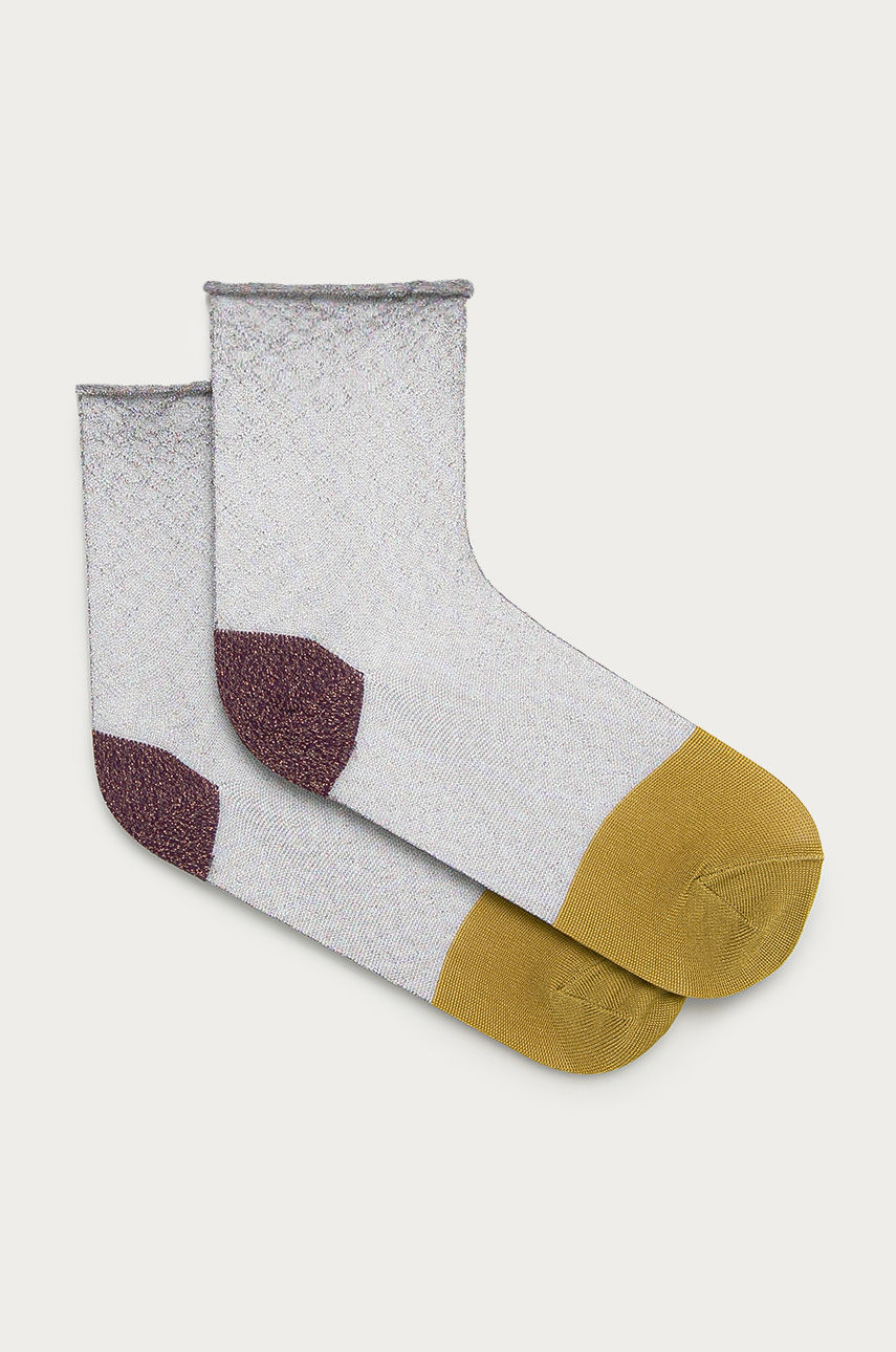 Krótkie skarpetki z kolekcji Happy Socks. Model wykonany z elastycznego materiału. Wzór: wzorzyste Rodzaj: skarpetki krótkie Skład: 58 % Poliamid, 25 % Wiskoza, 17 % Włókno metaliczne ID produktu: 4900-LGD0MH Kod producenta: SISFRN12.4301