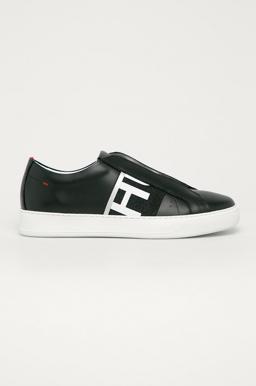 Buty z kolekcji Hugo. Model wykonany z połączenia skóry naturalnej i materiału tekstylnego. – Mocno usztywniony nosek. – Gumowa podeszwa. – Usztywniony zapiętek. – Skórzane wnętrze. – Długość wkładki wynosi: 23,5 cm. – Wymiary podane dla rozmiaru: 37. Materiał: tekstylny Obcas: płaski Materiał: skóra licowa Skład: Cholewka: Materiał tekstylny, Skóra naturalna, Wnętrze: Skóra naturalna, Podeszwa: Materiał syntetyczny ID produktu: 4900-OBD25U Kod producenta: 50441809