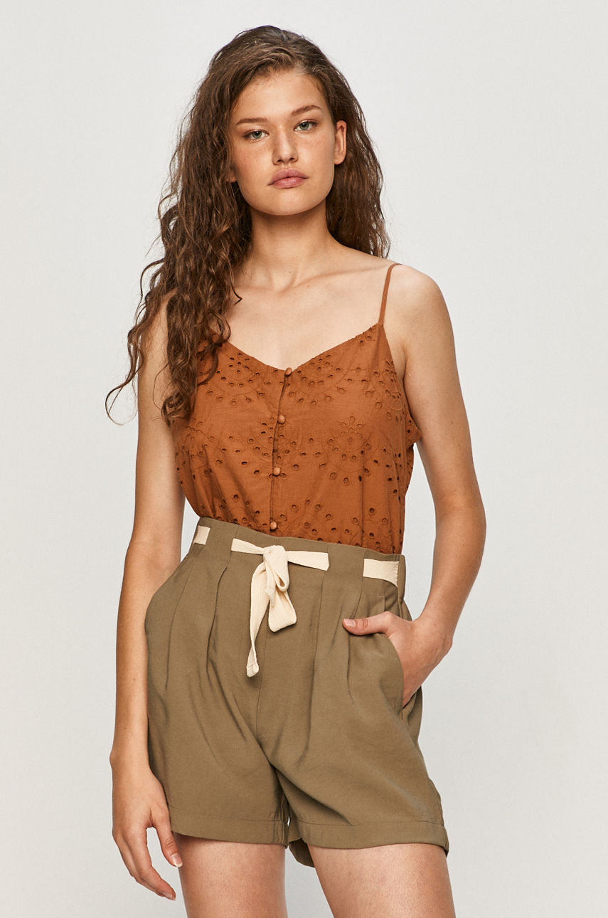 Bluzka z kolekcji Jacqueline de Yong. Model wykonany z koronkowego materiału. Posiada spiczasty dekolt. – Prosty fason. – Spiczasty dekolt. – Model na ramiączkach. – Cienka, nieelastyczna tkanina. – Model na podszewce. – Szerokość pod pachami: 47 cm. – Długość: 55 cm. – Wymiary podane dla rozmiaru: 36. Wzór: gładkie Fason: regular Materiał: koronka Rękaw: na ramiączkach Dekolt: szpic Materiał: bawełna Okazje: casual Skład: 100 % Bawełna ID produktu: 4901-TSD0WE Kod producenta: 15201337