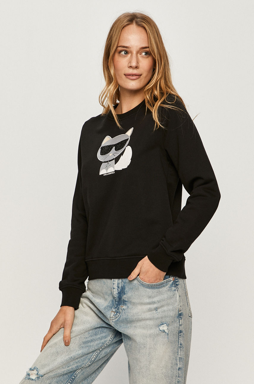 Bluza z kolekcji Karl Lagerfeld. Model wykonany z cienkiej, lekko elastycznej dzianiny. – Prosty fason. – Długi rękaw. – Wykończenie ze ściągacza. – Okrągły dekolt. – Długość rękawa: 63,5 cm. – Długość: 59,5 cm. – Szerokość pod pachami: 51,5 cm. – Wymiary podane dla rozmiaru: S. Wzór: aplikacja Materiał: bawełna Kaptur: bez kaptura Skład: 100 % Bawełna ID produktu: 4900-BLD0EI Kod producenta: 205W1803