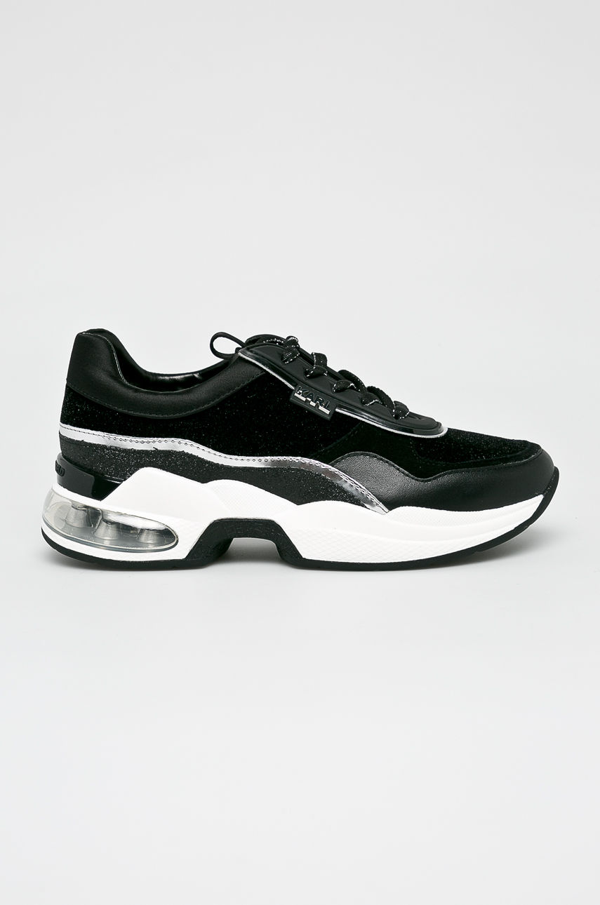 Buty z kolekcji Karl Lagerfeld. Model wykonany z połączenia materiału tekstylnego i skóry naturalnej. – Model z welurowymi wstawkami. – Migdałowy, usztywniony nosek. – Usztywniony kołnierz cholewki. – Gumowa podeszwa. – Wyjmowana, skórzana wkładka. – Model na platformie. – Sznurowany model. – Wysokość platformy: 4 cm. – Długość wkładki wynosi: 23,5 cm. – Wymiary podane dla rozmiaru: 37. Materiał: tekstylny Skład: Cholewka: Materiał tekstylny, Skóra naturalna, Wnętrze: Materiał syntetyczny, Podeszwa: Materiał syntetyczny, Wkładka: Skóra naturalna ID produktu: 4910-OBD1JT Kod producenta: KL61724