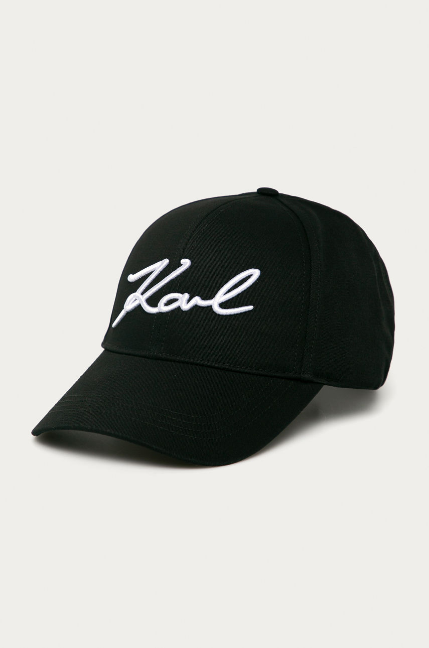 Czapka z daszkiem typu baseball z kolekcji Karl Lagerfeld. Model wykonany z tkaniny z aplikacją. – Zakrzywiony daszek. – Regulowany obwód. – Model z aplikacją. Wzór: aplikacja Materiał: bawełna Skład: 100 % Bawełna ID produktu: 4900-CAD06F Kod producenta: 205W3405