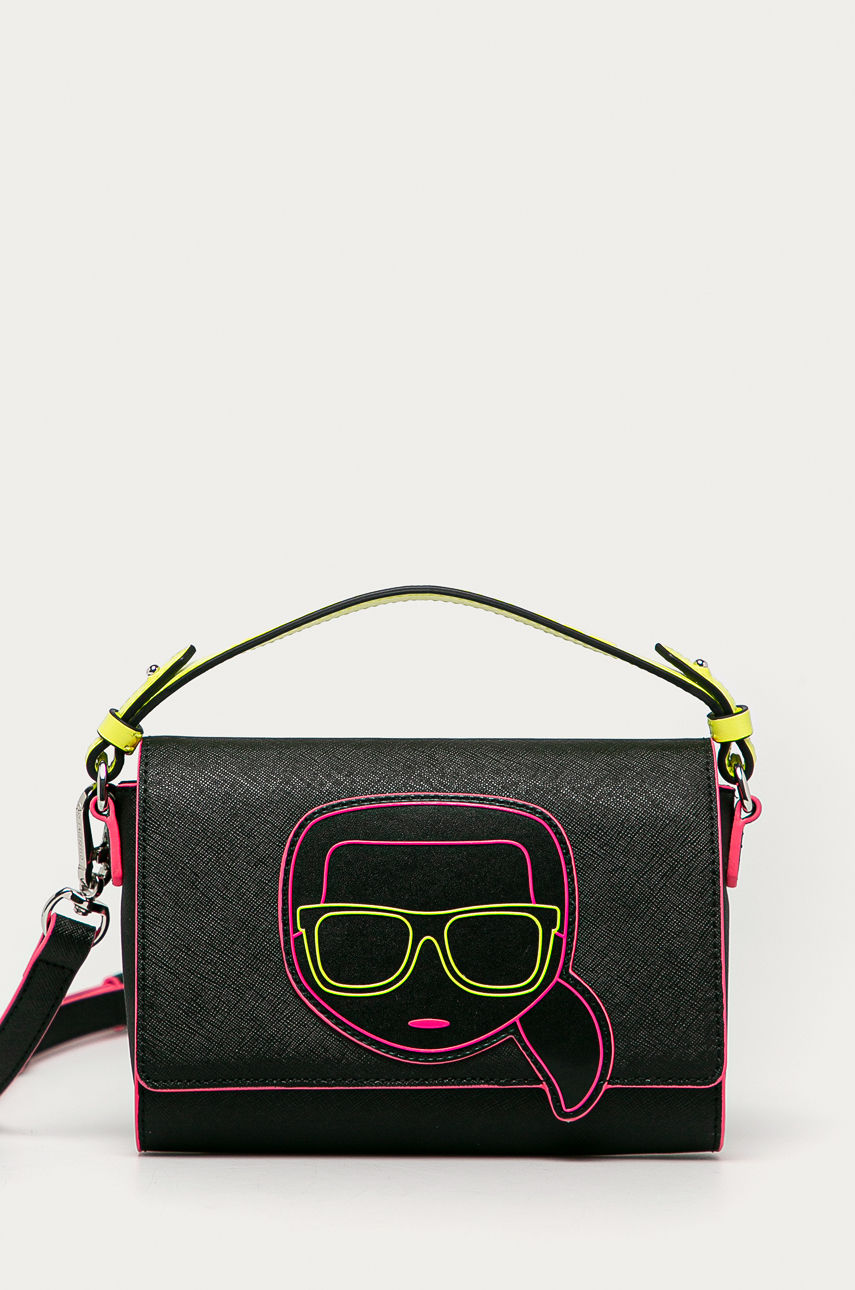 Mała torebka z kolekcji Karl Lagerfeld. Model zapinany wykonany ze skóry naturalnej. – Zapięcie na magnes. – Wewnątrz dodatkowe kieszenie. – Nie mieści formatu A4. – Dołączony pokrowiec. – Krótkie uchwyty. – Dopinany dłuższy pasek z regulacją. – Długość uchwytów: 29 cm. – Głębokość: 5,5 cm. – Wysokość: 14 cm. – Szerokość u podstawy: 19 cm. Wzór: aplikacja Wielkość: nie mieści A4 Materiał: skóra licowa Pasek: odpinany pasek Skład: 100 % Skóra naturalna ID produktu: 4900-TOD0ZW Kod producenta: 205W3008