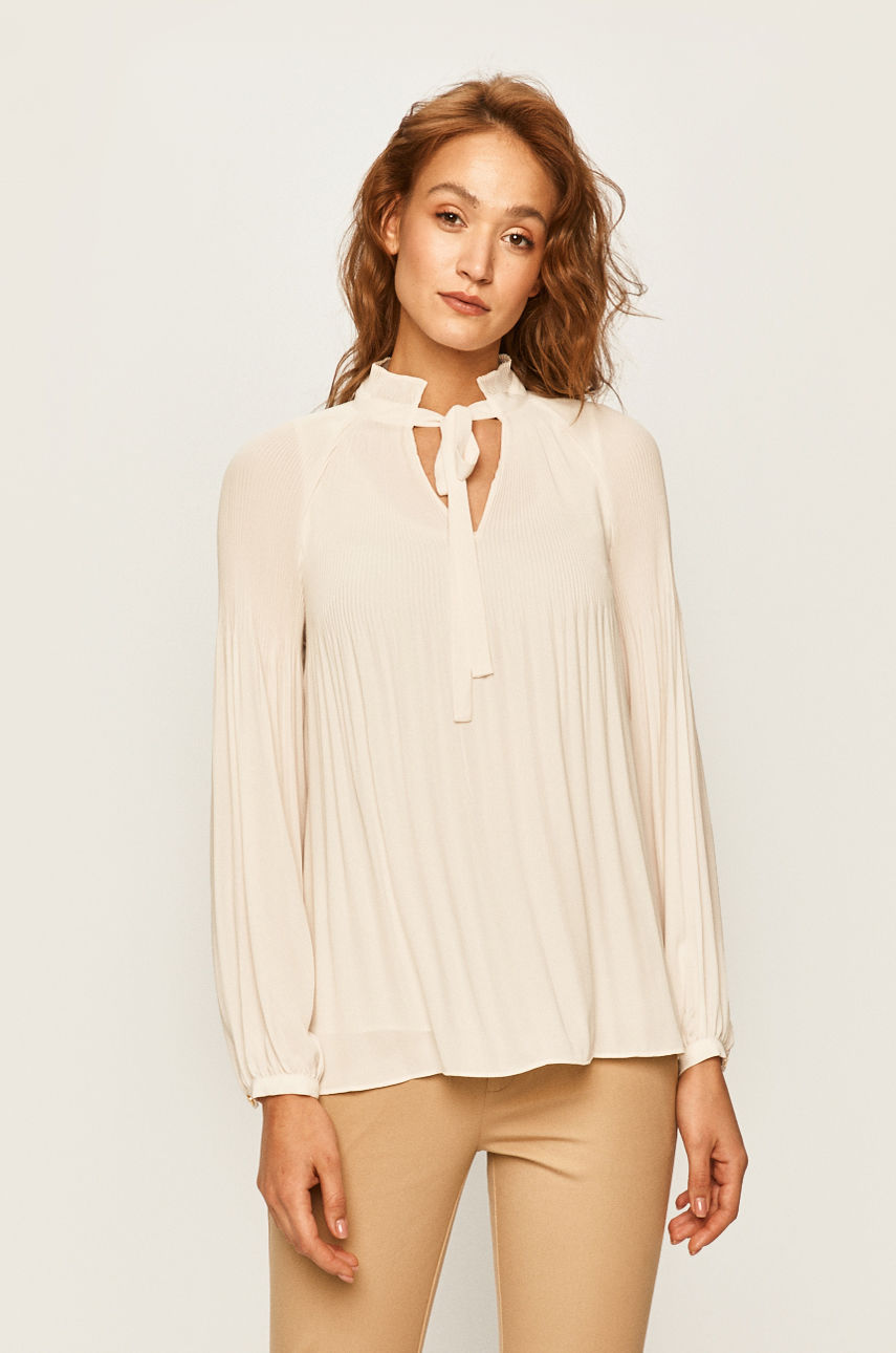 Bluzka z kolekcji Lauren Ralph Lauren. Model wykonany z gładkiej tkaniny. Posiada wiązany dekolt. – Prosty fason. – Plisowany model. Wzór: gładkie Fason: regular Rękaw: długi Dekolt: zapinany Okazje: eleganckie Okazje: casual Skład: 100 % Poliester ID produktu: 4901-KDD070 Kod producenta: 200678795004