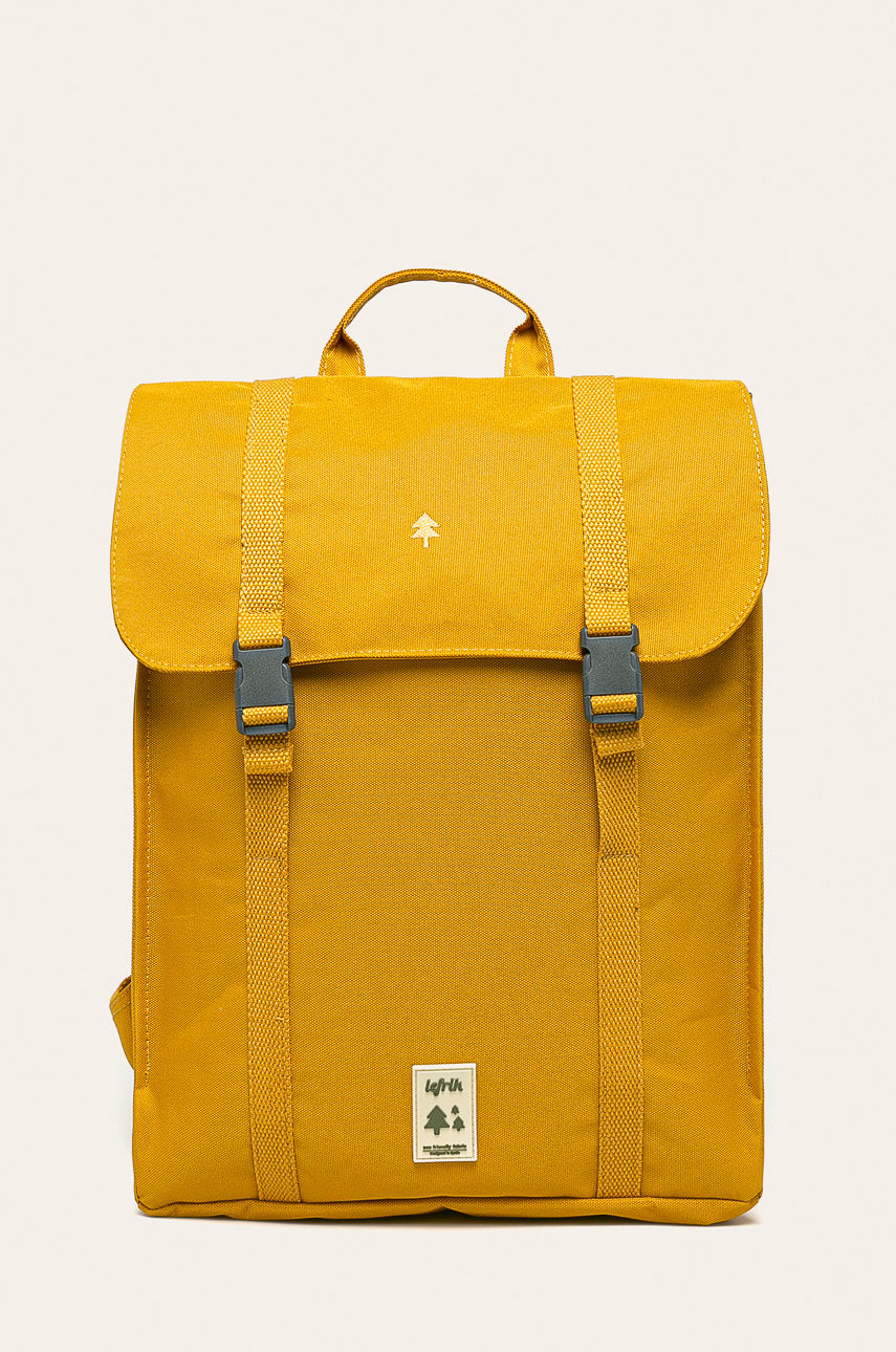 Plecak z kolekcji Lefrik. Model wykonany z gładkiego materiału. – Zapięcie na zatrzask. – Zewnętrzne kieszenie. – Uchwyt do ręki. – Regulowana długość pasków. – Mieści format A4. – Jednokomorowy model. – Posiada przegrodę na laptopa lub tableta. – Głębokość: 9 cm. – Szerokość u podstawy: 32 cm. – Wysokość: 41 cm. Wzór: gładkie Materiał: tekstylny Wielkość: mieści A4 Skład: 100 % Poliester ID produktu: 4901-PKU00P Kod producenta: HANDY.BACKPACK