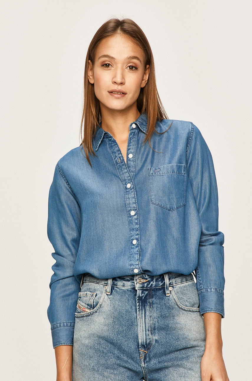 Koszula z kolekcji Levi’s. Model wykonany z denimu. Posiada klasyczny kołnierzyk. Informujemy, iż ze względu na politykę ochrony znaków towarowych marki Levi’s około 10% asortymentu posiada „pustą wszywkę” (w kolorze czerwonym, bez logo marki, wyłącznie z międzynarodowym symbolem zarejestrowanego znaku towarowego). „Pusta wszywka” jest zarejestrowanym znakiem towarowym marki Levi’s i opatrzone nią modele są pełnowartościowymi, oryginalnymi produktami. W razie wątpliwości prosimy o kontakt z Biurem Obsługi Klienta. – Prosty fason. – Rękawy z zapinanymi mankietami. – Miękki kołnierzyk klasyczny, typu kent. – Zapięcie na zatrzaski. – Kieszonki na piersi. – Długość rękawa: 60 cm. – Długość: 65 cm. – Szerokość pod pachami: 46 cm. – Szerokość w ramionach: 38 cm. – Wymiary podane dla rozmiaru: S. Wzór: gładkie Fason: regular Rękaw: długi Materiał: jeans Kołnierzyk: klasyczny Okazje: casual Skład: 100 % Bawełna ID produktu: 4901-KKD00D Kod producenta: 77653.0025