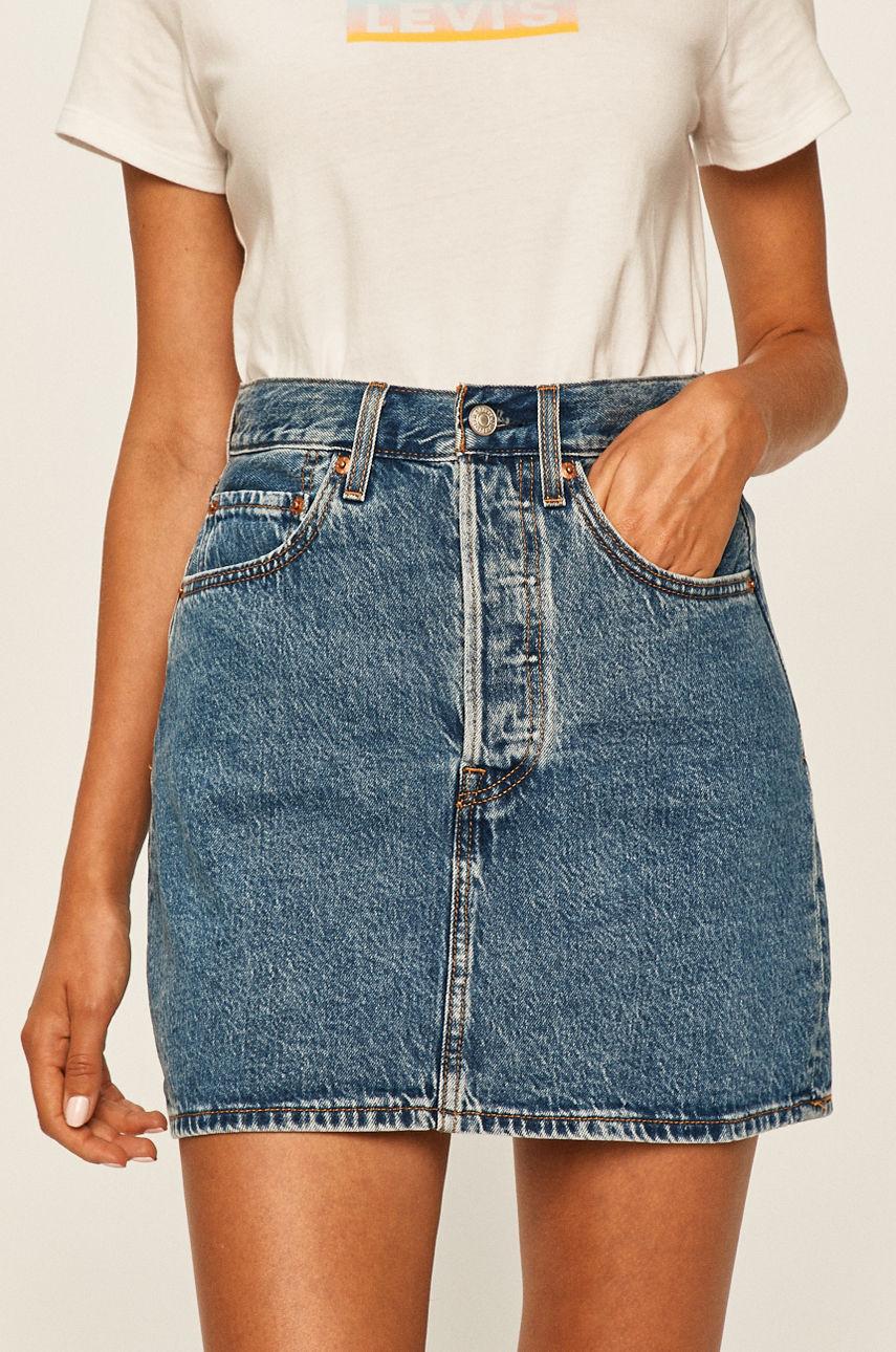 Spódnica z kolekcji Levi’s. Model o prostym kroju, wykonany z denimu. Informujemy, iż ze względu na politykę ochrony znaków towarowych marki Levi’s około 10% asortymentu posiada „pustą wszywkę” (w kolorze czerwonym, bez logo marki, wyłącznie z międzynarodowym symbolem zarejestrowanego znaku towarowego). „Pusta wszywka” jest zarejestrowanym znakiem towarowym marki Levi’s i opatrzone nią modele są pełnowartościowymi, oryginalnymi produktami. W razie wątpliwości prosimy o kontakt z Biurem Obsługi Klienta. – Zapięcie na guziki. – Prosty fason. – Wsuwane kieszenie. – Szerokość w pasie: 36 cm. – Długość: 41 cm. – Wymiary podane dla rozmiaru: 27. Wzór: gładkie Materiał: tkanina Długość: mini Materiał: jeans Okazje: casual Fason: prosty Skład: 79 % Bawełna, 21 % Lyocell ID produktu: 4900-SDD02W Kod producenta: 27889.0001