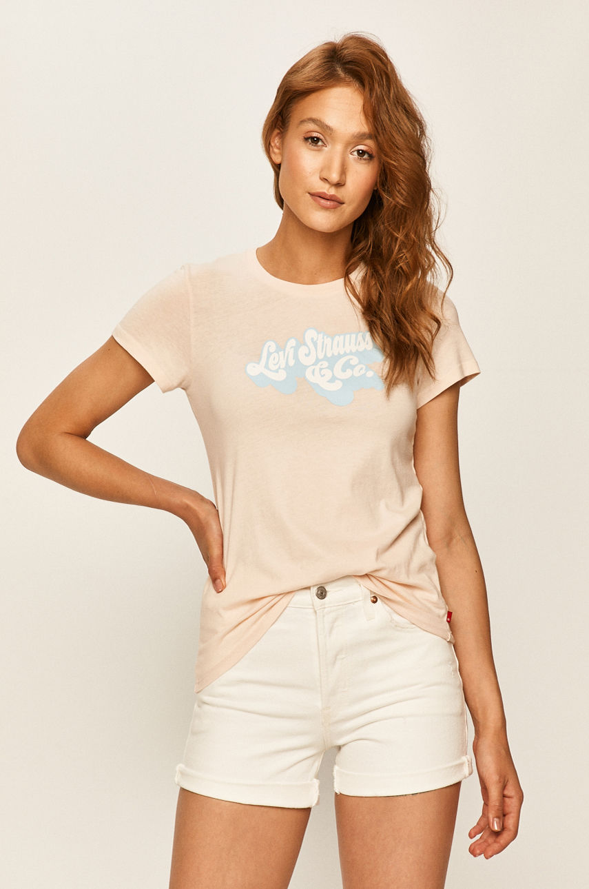 T-shirt z kolekcji Levi’s. Model wykonany z cienkiej, elastycznej dzianiny. Informujemy, iż ze względu na politykę ochrony znaków towarowych marki Levi’s około 10% asortymentu posiada „pustą wszywkę” (w kolorze czerwonym, bez logo marki, wyłącznie z międzynarodowym symbolem zarejestrowanego znaku towarowego). „Pusta wszywka” jest zarejestrowanym znakiem towarowym marki Levi’s i opatrzone nią modele są pełnowartościowymi, oryginalnymi produktami. W razie wątpliwości prosimy o kontakt z Biurem Obsługi Klienta. – Prosty fason. – Okrągły dekolt. – Cienka, elastyczna dzianina. – Model z nadrukiem. – Długość: 63 cm. – Szerokość pod pachami: 42 cm. – Wymiary podane dla rozmiaru: S. Wzór: nadruk Dekolt: okrągły Materiał: bawełna Okazje: casual Skład: 100 % Bawełna ID produktu: 4901-TSD1CN Kod producenta: 17369.0921