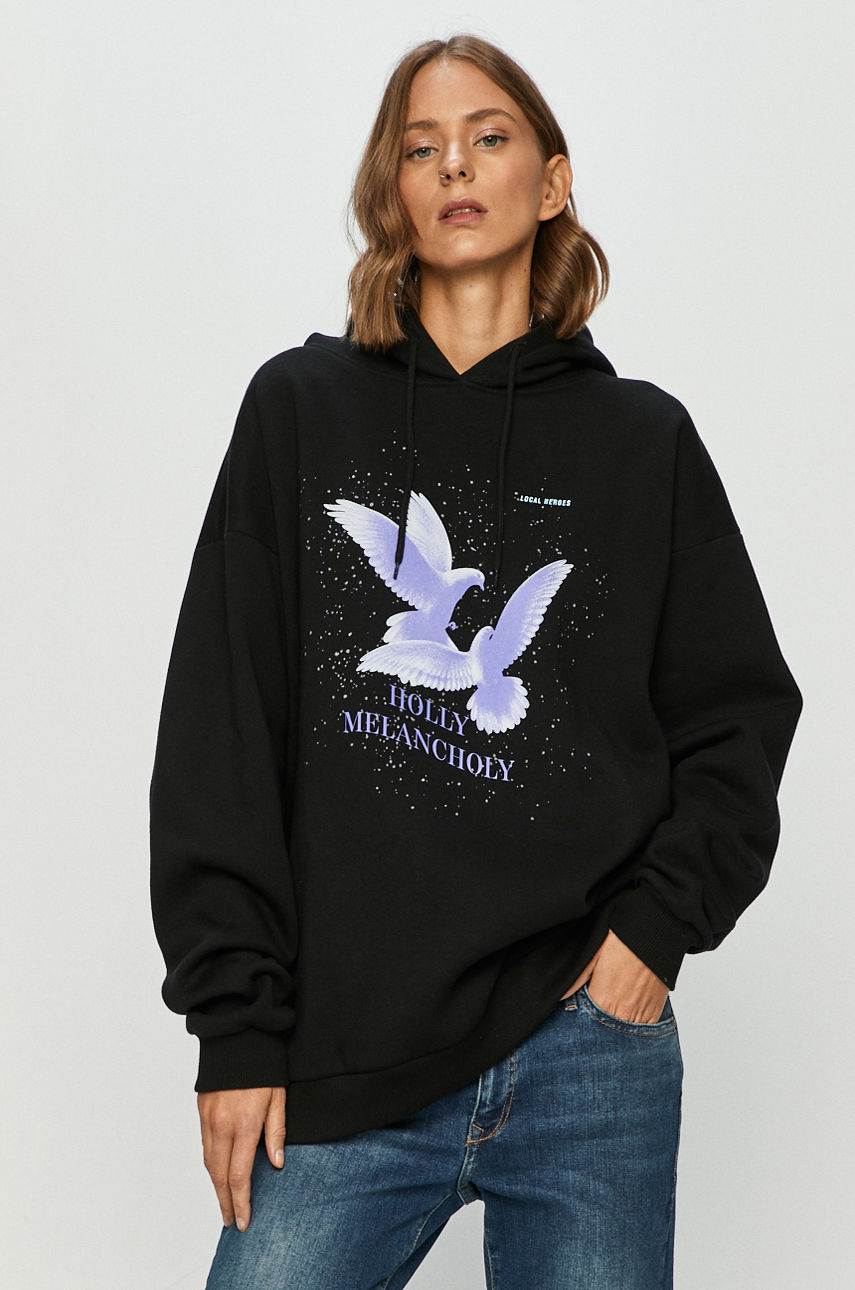 Bluza z kapturem z kolekcji Local Heroes. Model wykonany z grubej, lekko elastycznej dzianiny. – Miękko wyściełany model. – Luźny fason. – Kieszeń z przodu. – Kaptur ściągany troczkami. – Gruba, elastyczna dzianina. – Model z nadrukiem. – Wykończenie ze ściągacza. – Długość rękawa: 60 cm. – Długość: 70 cm. – Szerokość pod pachami: 58 cm. – Wymiary podane dla rozmiaru: S. Wzór: nadruk Kaptur: z kapturem Skład: 90 % Bawełna, 10 % Poliester ID produktu: -100-BLD00I Kod producenta: AW2021S0007