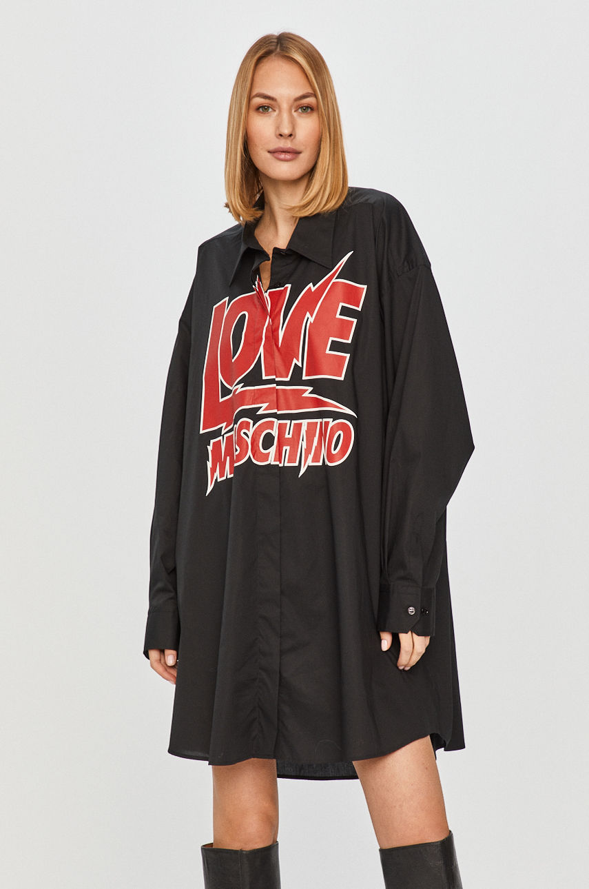 Koszula z kolekcji Love Moschino. Model wykonany z tkaniny. – Luźny fason. – Obniżona linia ramion. – Długi rękaw. – Rękawy z zapinanymi mankietami. – Model z nadrukiem. Wzór: nadruk Rękaw: długi Kołnierzyk: klasyczny Okazje: casual Fason: relaxed ID produktu: 4900-KDD062 Kod producenta: W.C.D81.01.S.3296