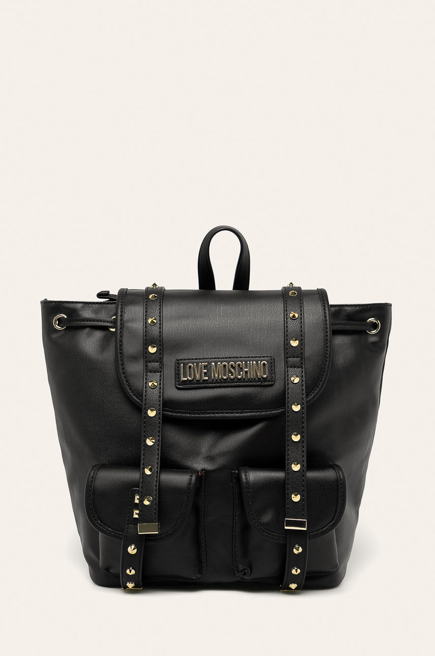 Plecak z kolekcji Love Moschino. Model wykonany z skóry ekologicznej. – Komora ściągana troczkami. – Ozdobne detale. – Regulowana długość pasków. – Nie mieści formatu A4. – Model z dżetami. – Zewnętrzne kieszenie. – Wewnątrz dodatkowe kieszenie. – Głębokość: 16 cm. – Wysokość: 30 cm. – Szerokość u podstawy: 26.5 cm. Wzór: gładkie Wielkość: nie mieści A4 Materiał: imitacja skóry licowej Skład: 70 % Bawełna, 30 % PVC ID produktu: 4901-PKD05O Kod producenta: JC4078PP1ALL100A
