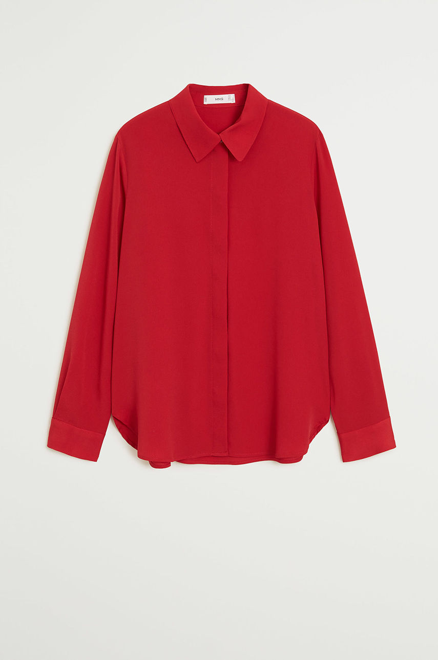Koszula z kolekcji Mango. Model wykonany z gładkiej tkaniny. – Rękawy z zapinanymi mankietami. – Prosty fason. – Model z kołnierzykiem. – Zapięcie na guziki. Wzór: gładkie Fason: regular Rękaw: długi Kołnierzyk: klasyczny Okazje: casual Skład: 100 % Poliester ID produktu: -100-KDD003 Kod producenta: 77062507