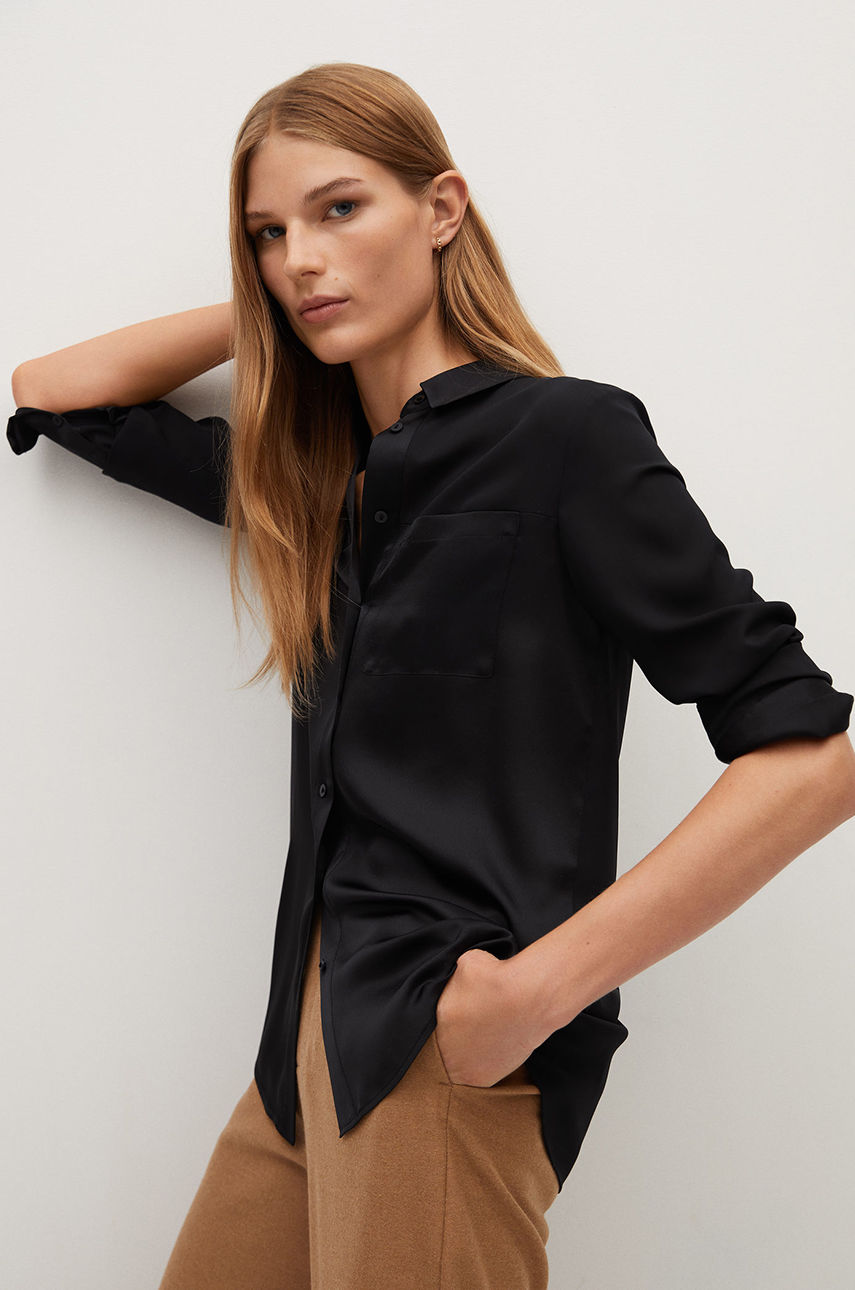 Koszula z kolekcji Mango. Model wykonany z gładkiej tkaniny. – Prosty fason. – Długi rękaw. – Zapięcie na guziki. – Model z kołnierzykiem. – Kieszonka na piersi. Skład: 100 % Poliester ID produktu: -100-KDD00Z Kod producenta: 77087612
