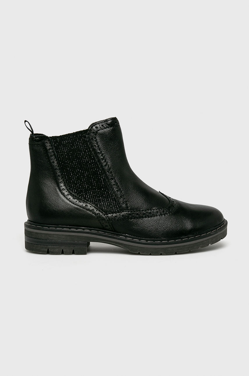 Botki z kolekcji Marco Tozzi. Model wykonany ze skóry naturalnej. – Ocieplony model. – Lekko usztywniony nosek. – Zapięcie na suwak. – Żłobiona podeszwa. – Komfortowe wnętrze. – Usztywniony zapiętek. – Długość wkładki wynosi: 24 cm. – Wymiary podane dla rozmiaru: 37. Obcas: płaski Ocieplenie: ocieplane Skład: Cholewka: Skóra naturalna, Wnętrze: Materiał syntetyczny, Materiał tekstylny, Podeszwa: Materiał syntetyczny ID produktu: 4910-OBD03I Kod producenta: 2.2.25481.33.002